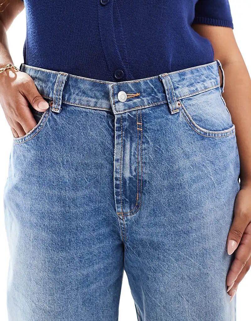 Широкие джинсы dad в средне-синем цвете ASOS