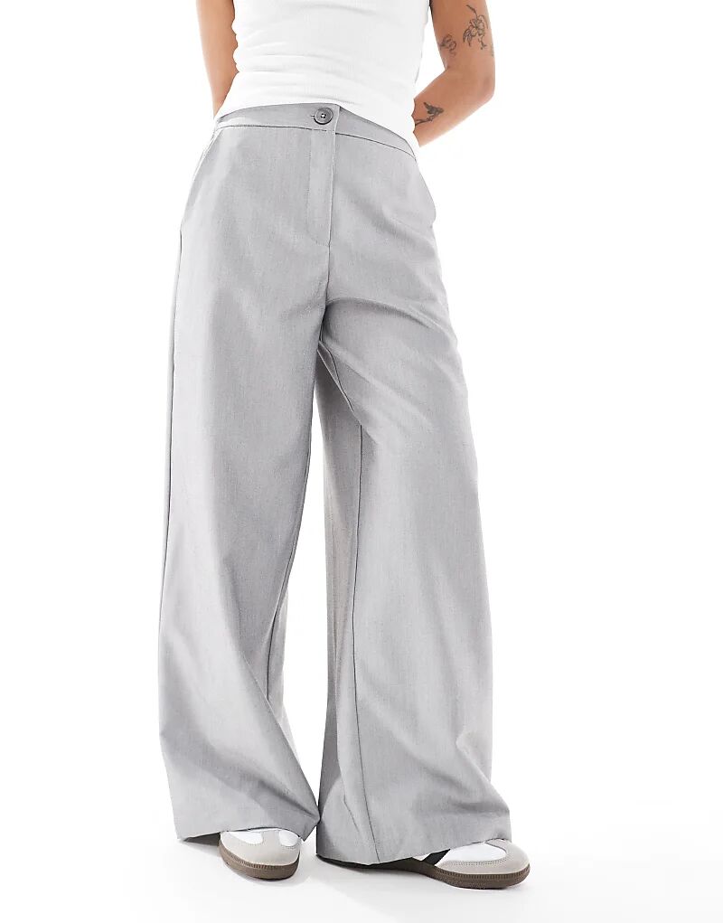 Широкие брюки-папы, сшитые на заказ, серого цвета ASOS