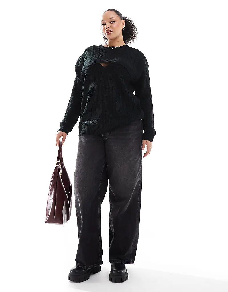 Вырезанный вязаный джемпер черного цвета Yours 3 195₽