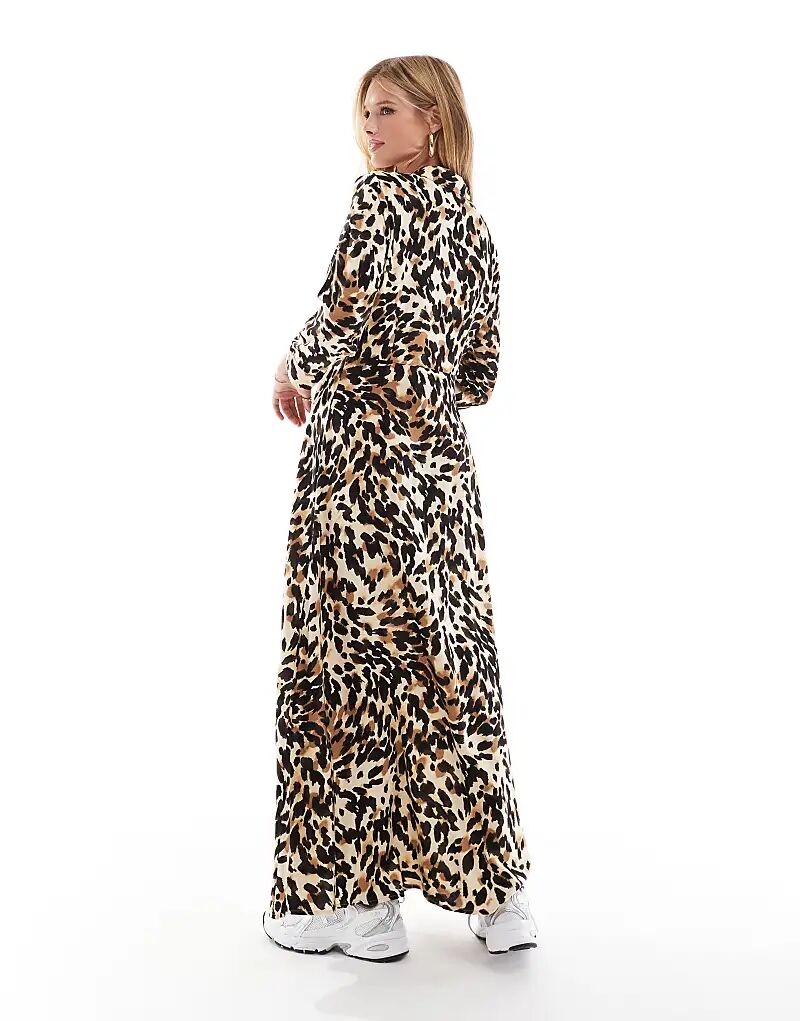 Макси-платье-рубашка с черным леопардовым принтом YAS