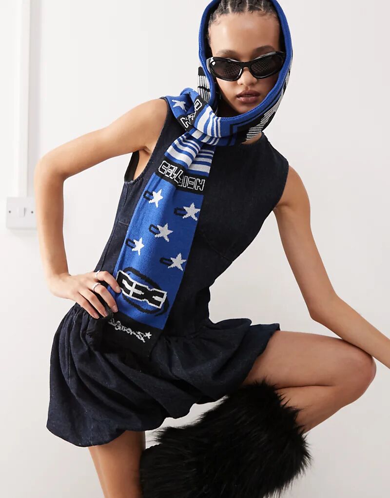 Платье-фонарик COLLUSION из денима цвета индиго