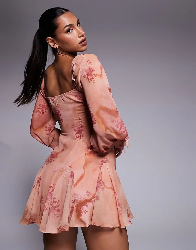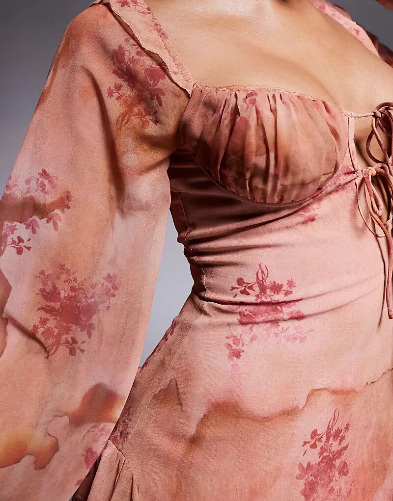 Мини-платье молочницы с завязками в абрикосовом цвете Love Triangle
