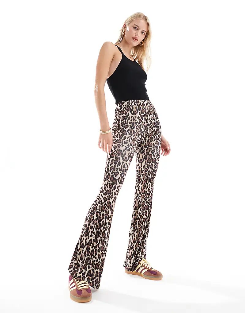 Расклешенные брюки в рубчик с леопардовым принтом ONLY