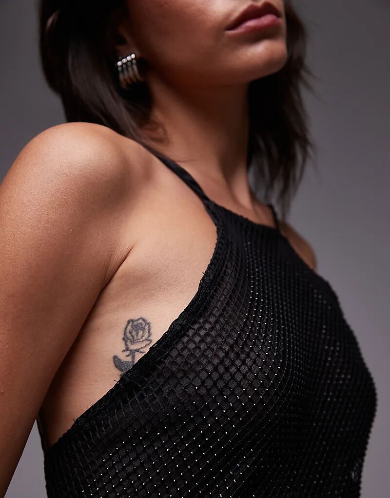 Макси-платье с сетчатым верхним слоем из страз черного цвета Mango