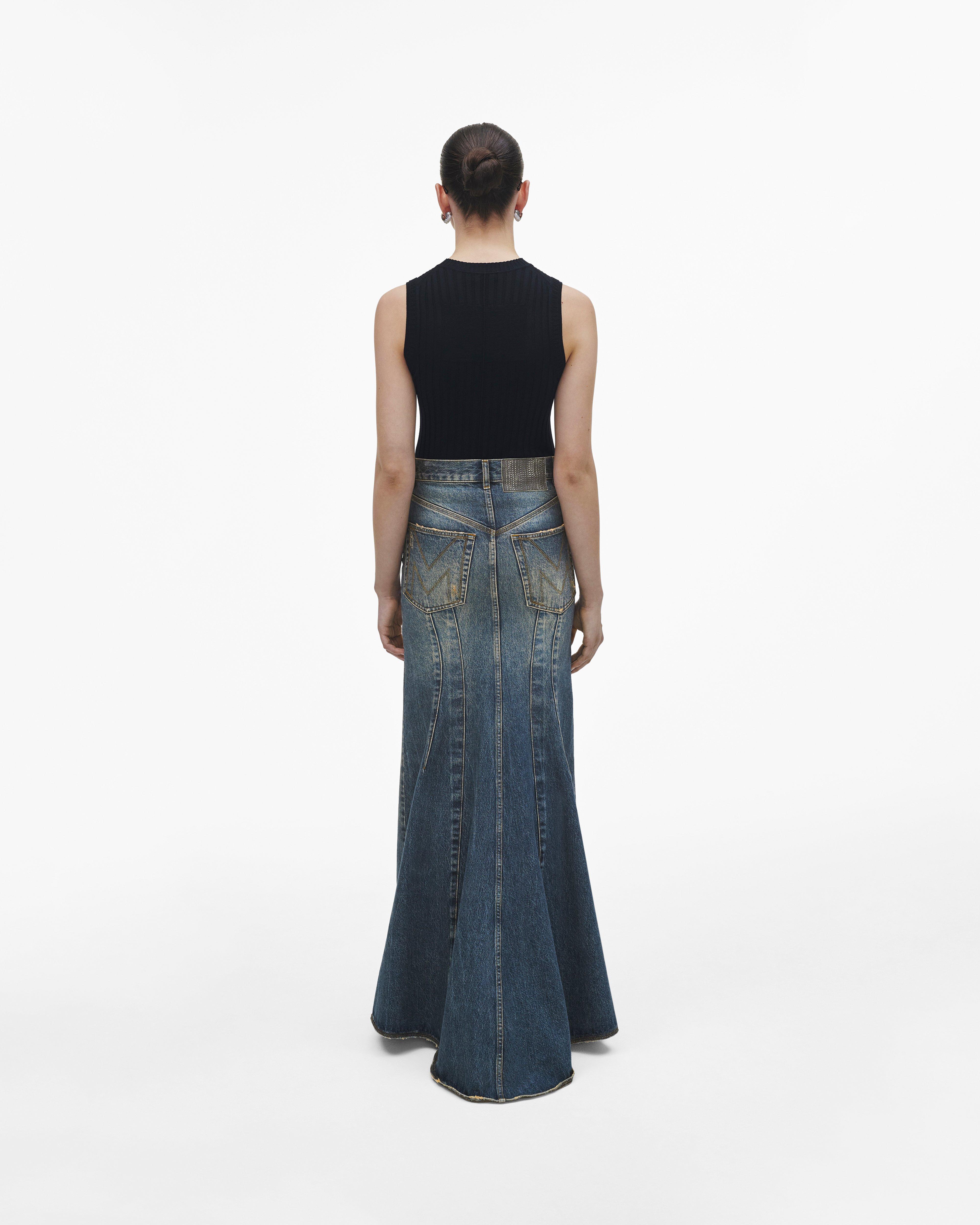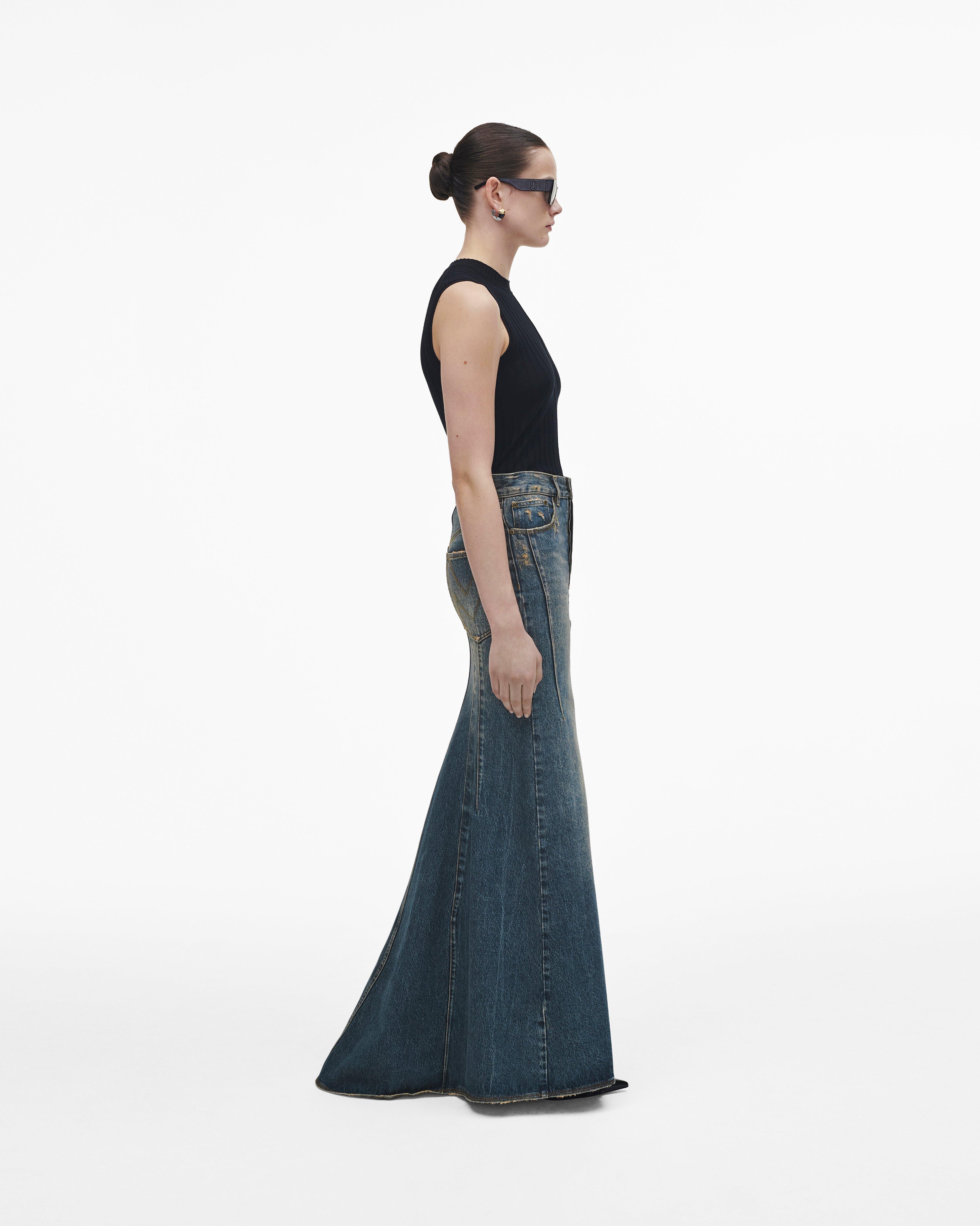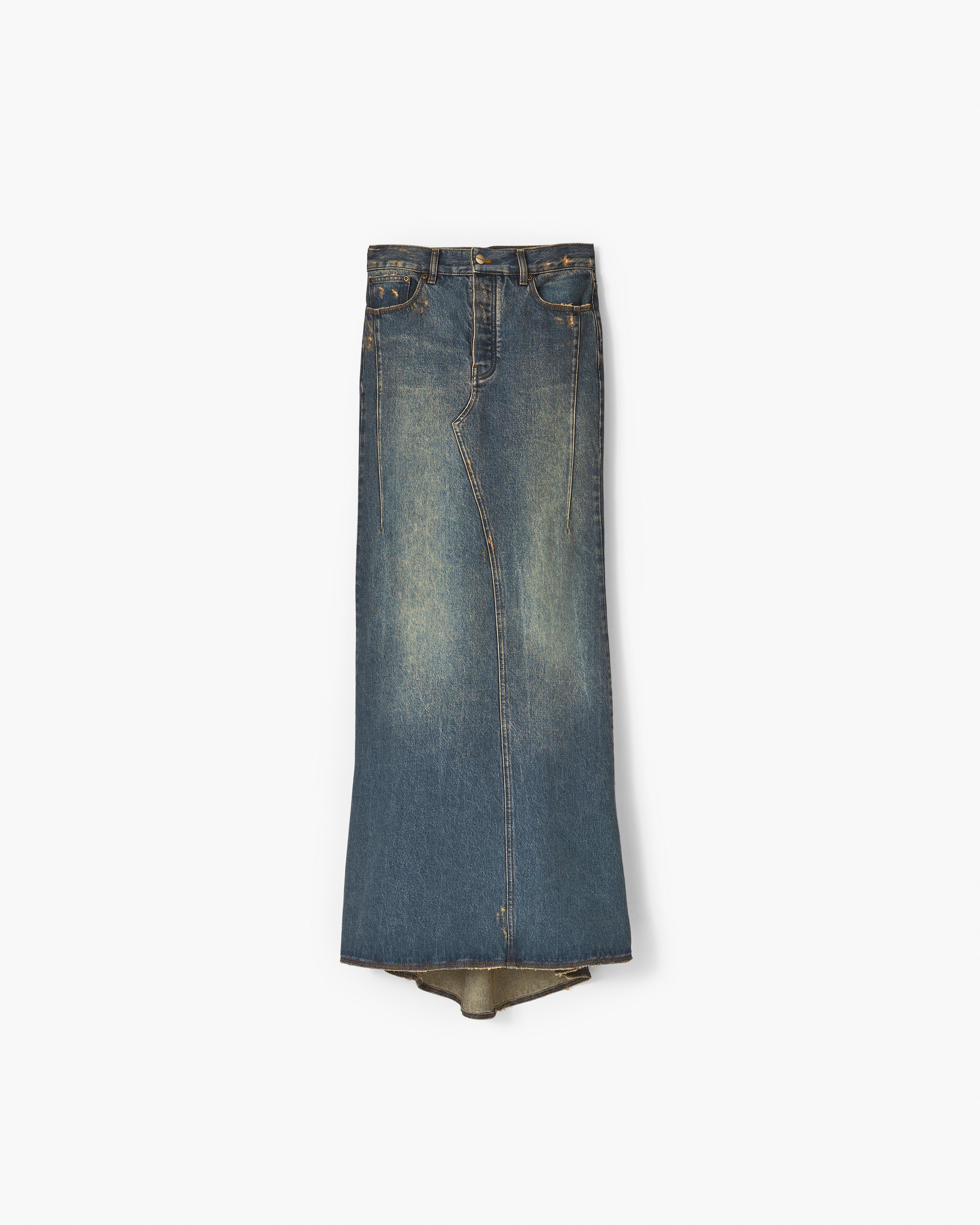 Вдохновленная подиумом, переосмысленная для повседневности. Эта обтекаемая макси-юбка из денима специально обработана и выстирана для идеального поношенного вида. Каждая юбка имеет рифленый хвост и нашу фирменную строчку «М» на задних карманах.