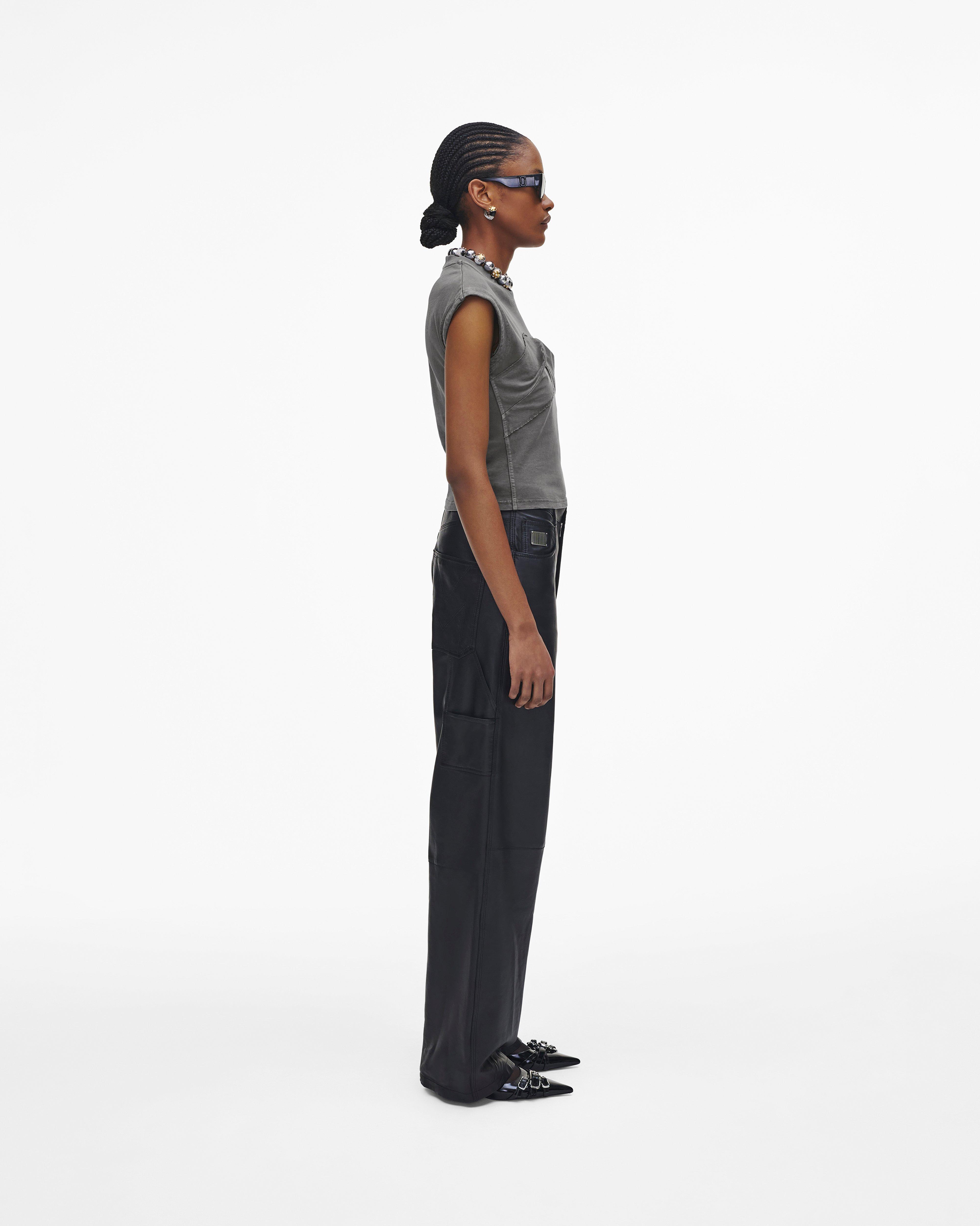 Подиум для реального момента. Эта футболка из джерси и хлопка имеет форму, вдохновленную футболкой для мускулистых спортсменов, и украшена пришитыми аппликациями на груди.