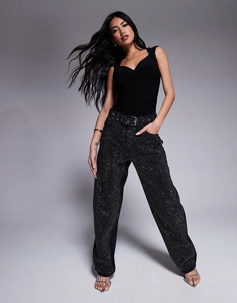 Боди с запахом и сборками черного цвета River Island