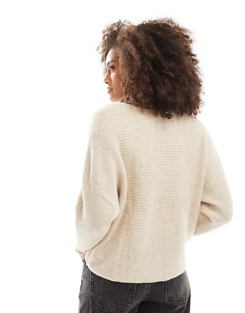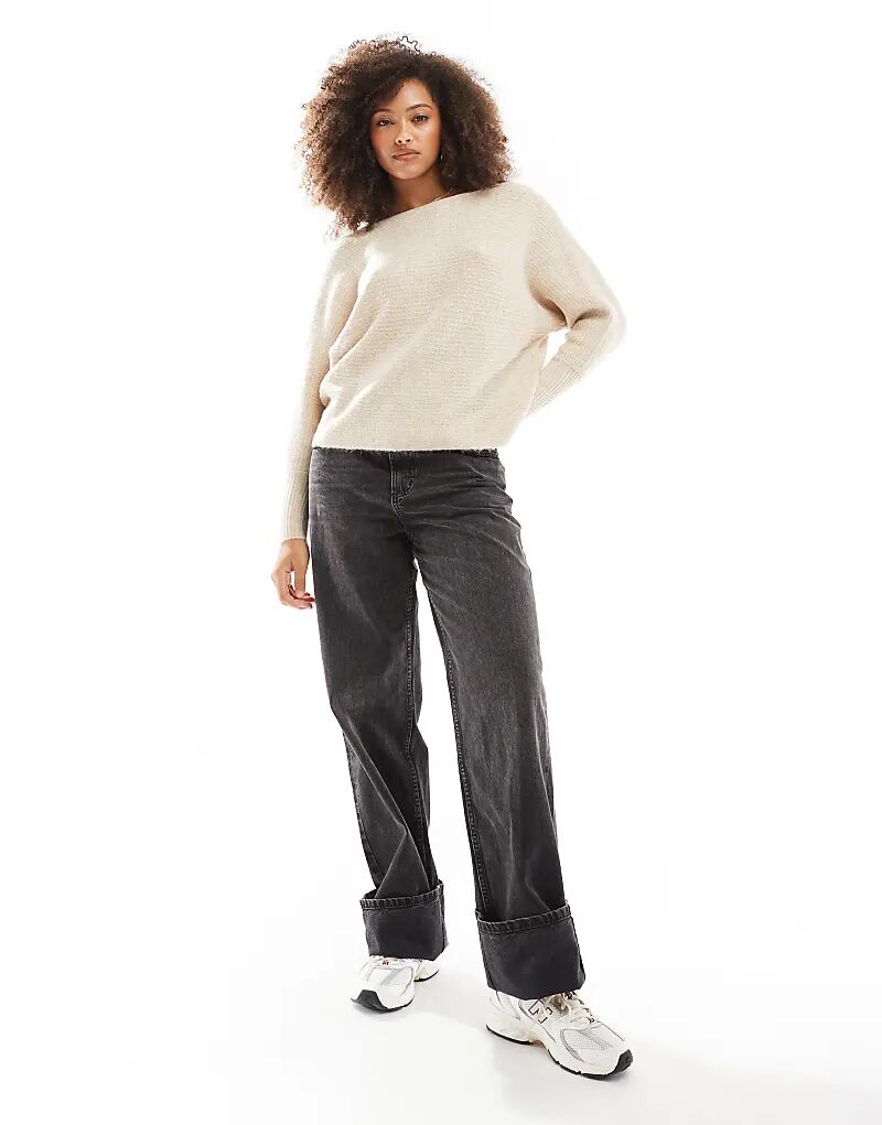 Джемпер с широким воротом в рубчик цвета экрю ONLY