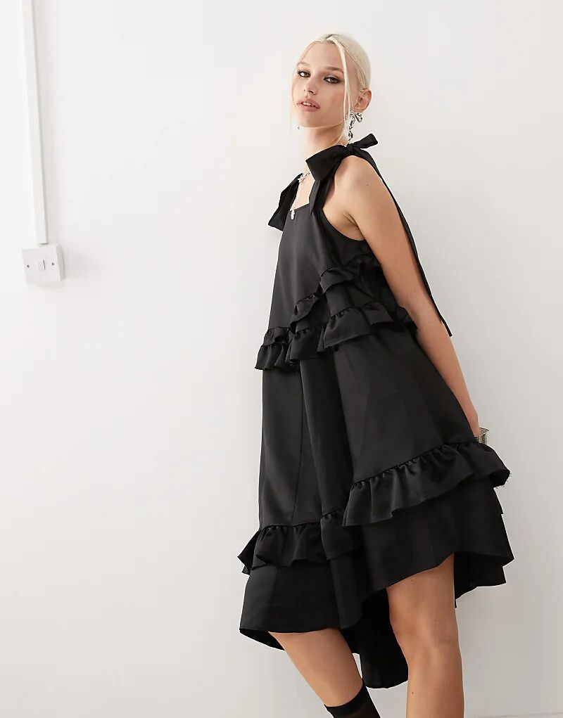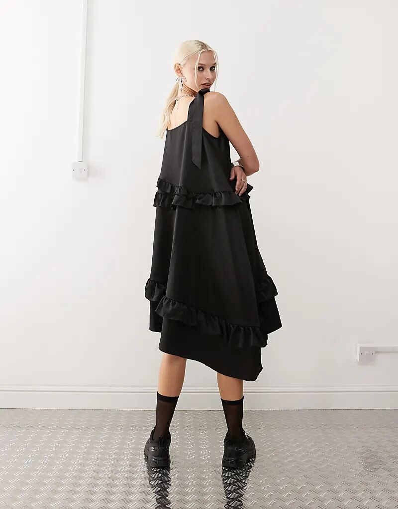 Платье-халат COLLUSION с атласными воланами черного цвета 5 744₽