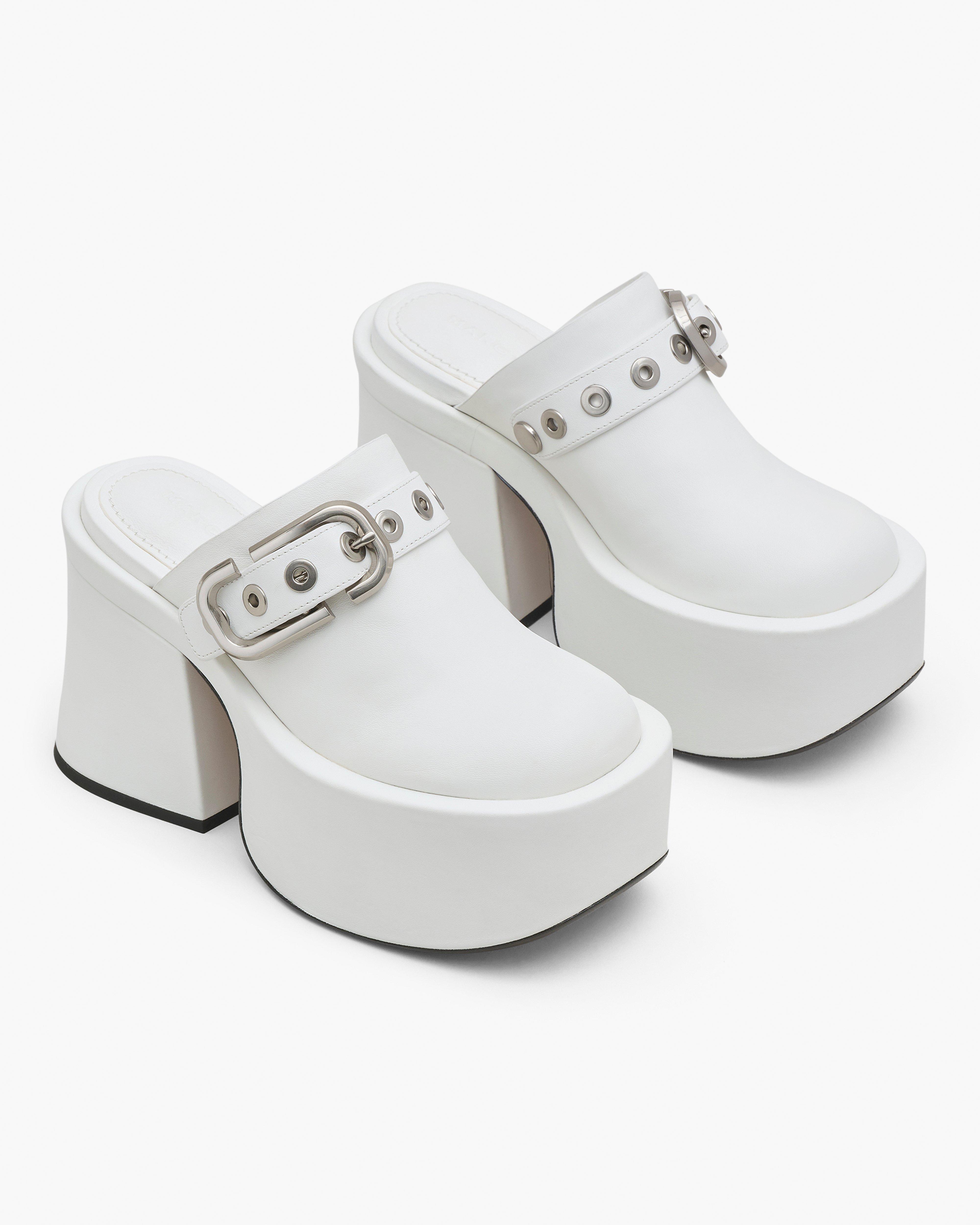 Эти массивные сабо, соответствующие стилю гранж нашего бренда, изготовлены из роскошной кожи и рассчитаны на каблук высотой 4,5 дюйма с регулируемой пряжкой J Marc.