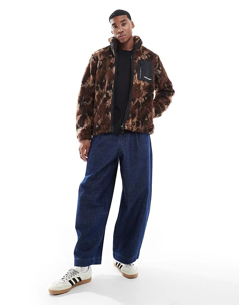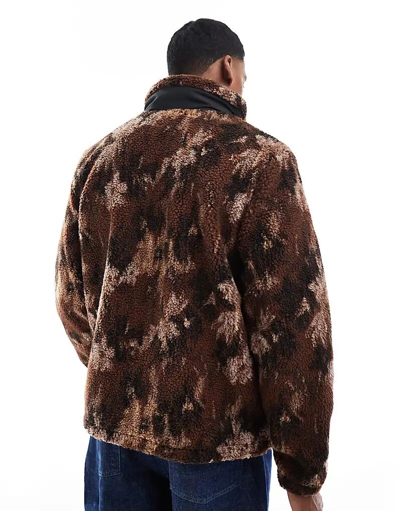 Флис борг с застежкой-молнией в коричневом принте Jack & Jones