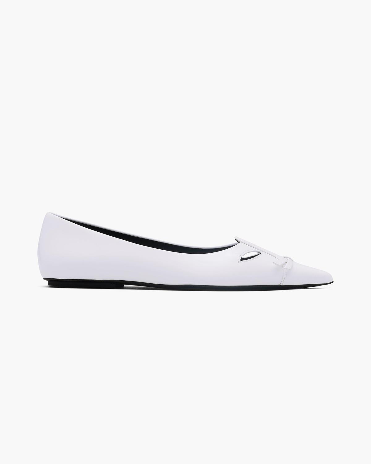Балетки с острым носком и игриво-очаровательным поворотом Marc Jacobs. Этот силуэт, вдохновленный кошачьим образом, отличается мягкой стелькой для повышенного комфорта и изысканной ручной отделкой с пришитыми вручную усами и декоративными вырезами в виде кошачьего глаза. Изготовленный из роскошной кожи Spazzolato, этот силуэт добавляет непринужденную текстуру и характер любому наряду.