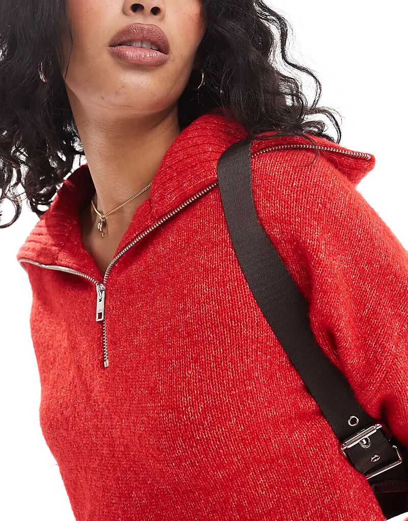 Джемпер с полумолнией красного цвета JJXX 5 205₽