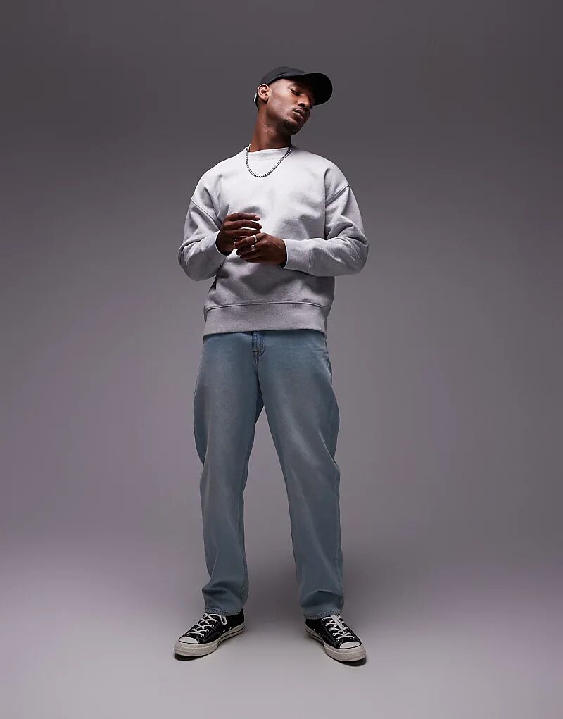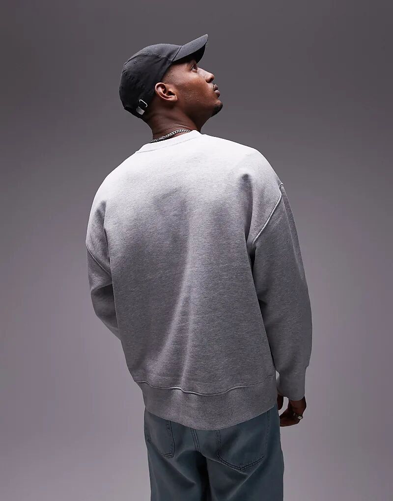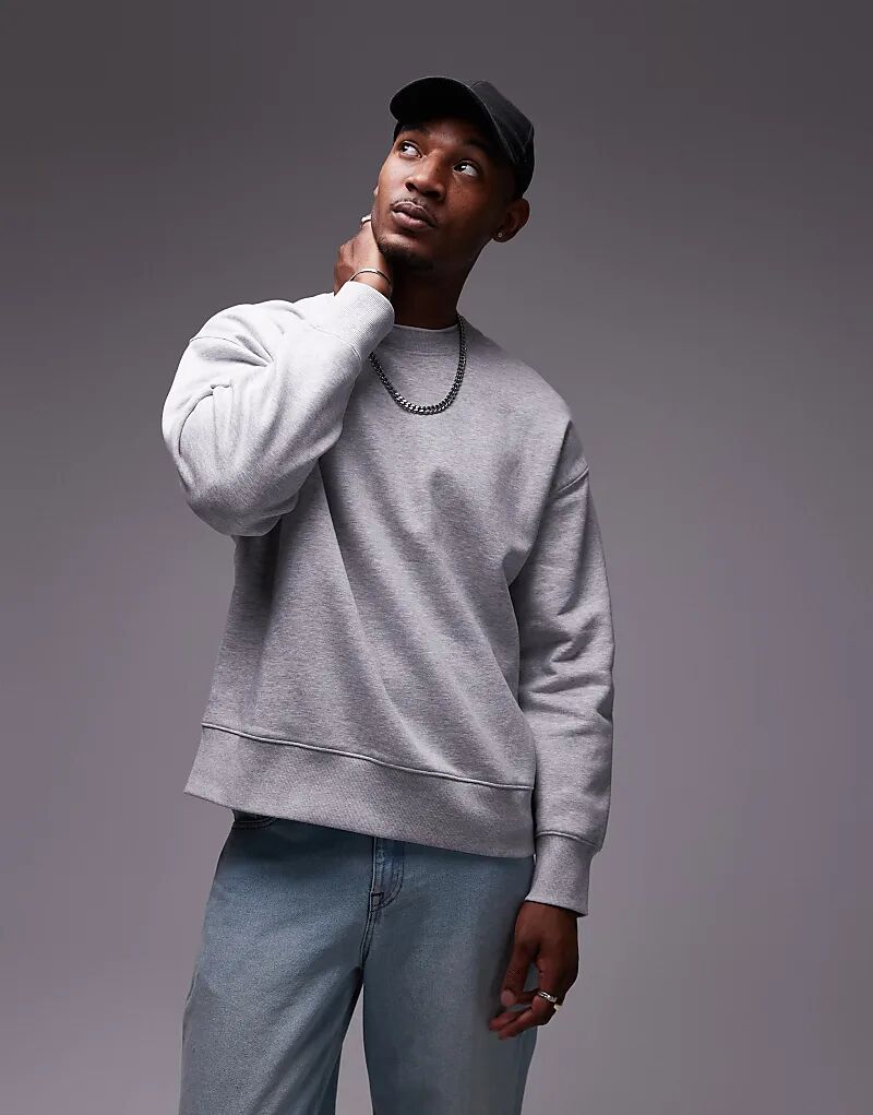 Толстовка премиум-класса из плотной ткани оверсайз серого меланжевого цвета Topman