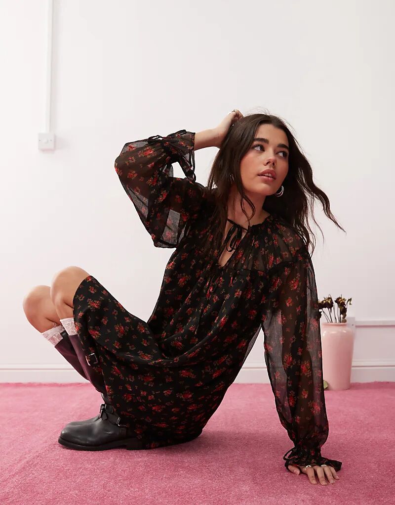 Платье-халат с кокеткой черного цвета Miss Selfridge