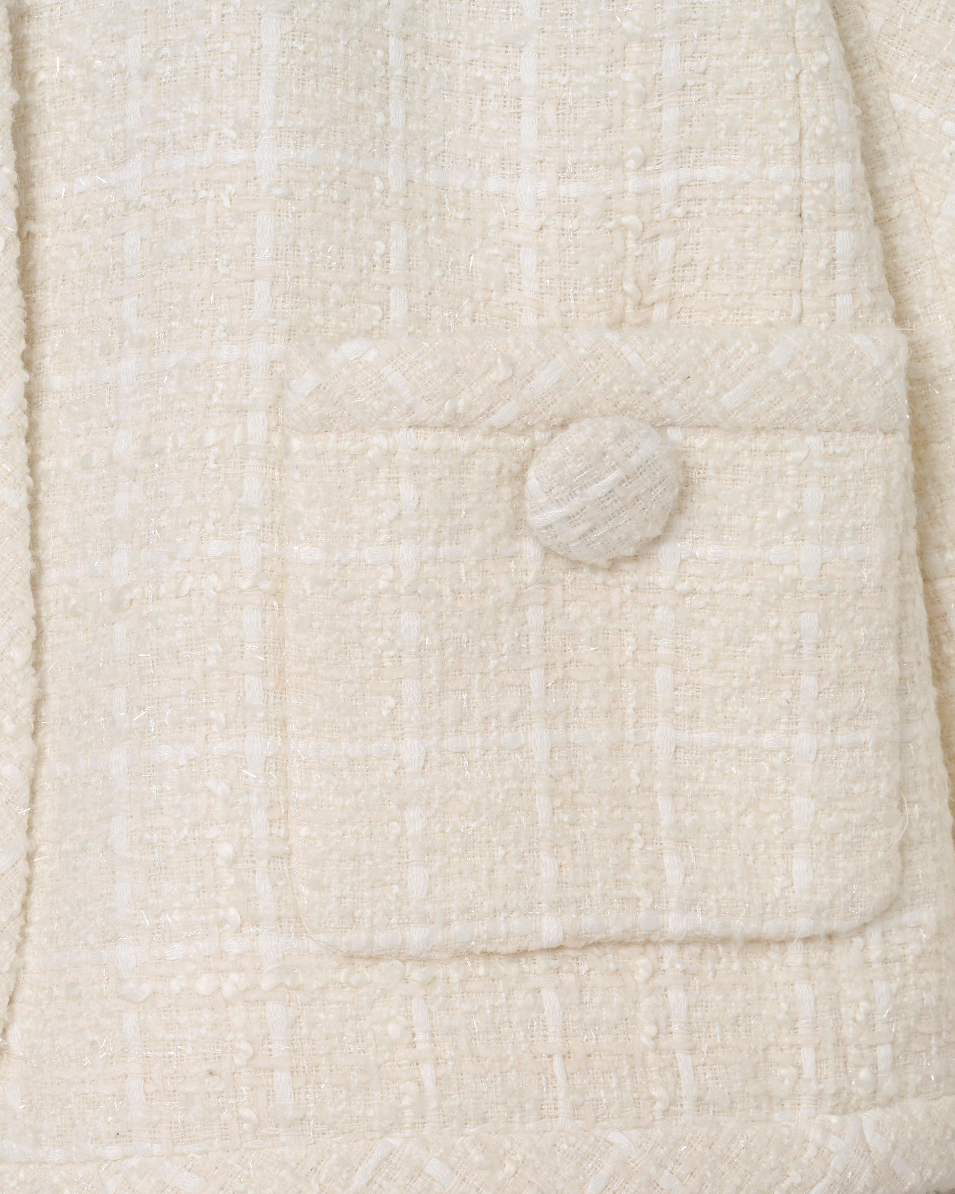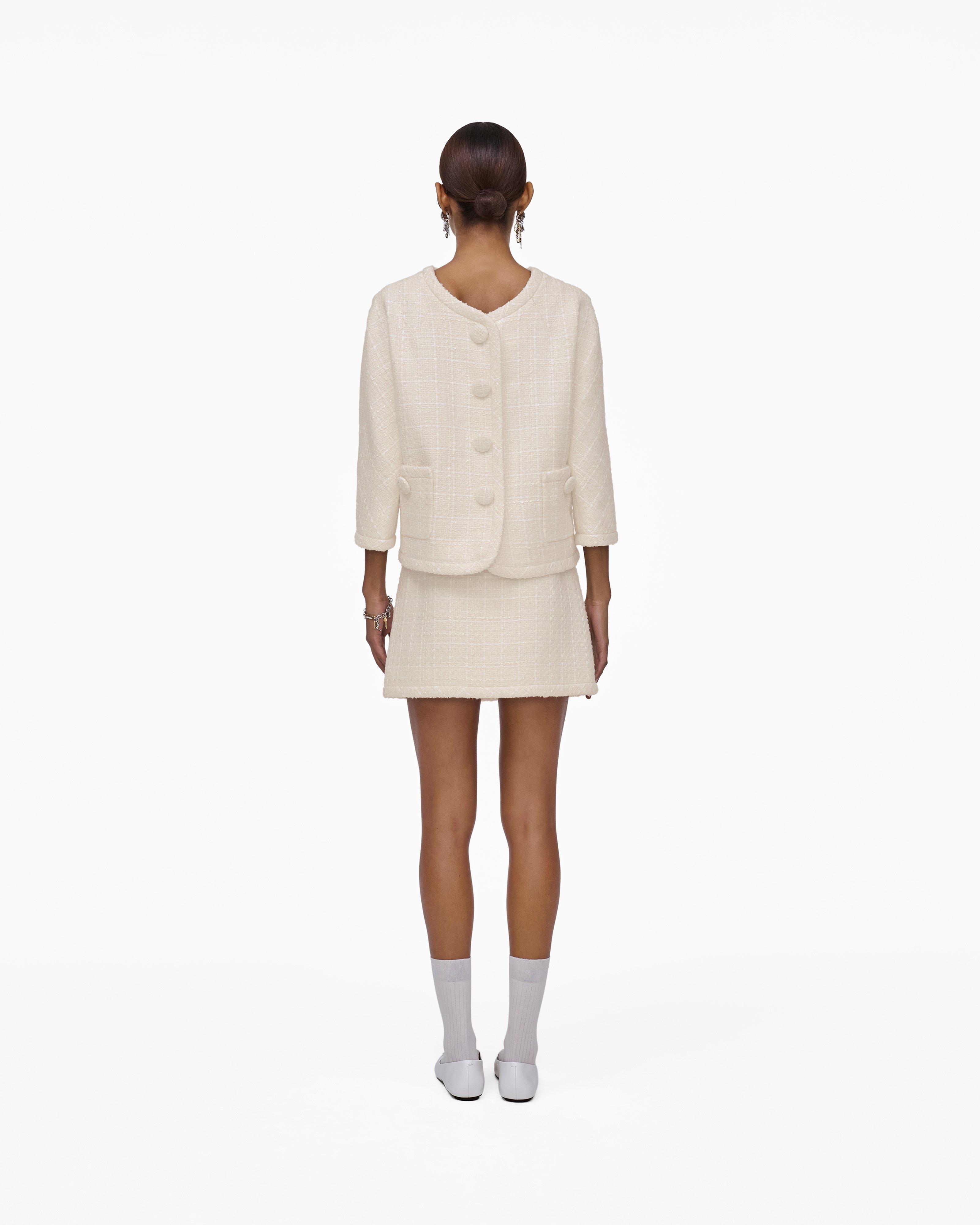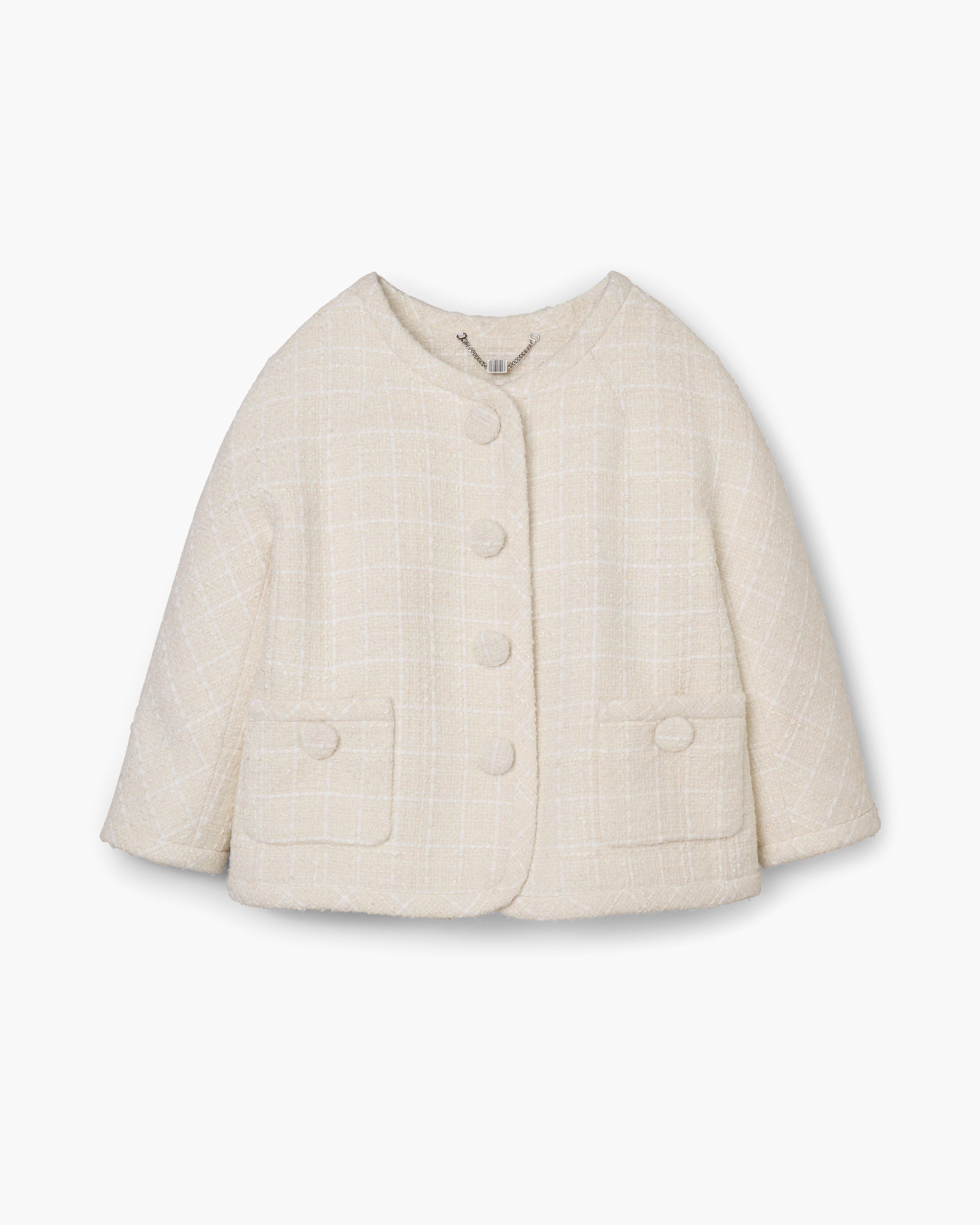 Вдохновленный культовыми силуэтами Marc Jacobs Runway и классическими фактурными твидовыми тканями, этот вневременный изысканный и особенно современный пиджак можно носить двумя способами: застегивая кнопки спереди или застегивая кнопки сзади. Благодаря буфами, круглому вырезу без воротника и застежкам на пуговицы, обтянутым полукуполом, эта желанная вещь имеет укороченный, сужающийся фасон для стилизованной элегантности. Сочетайте с брошью Daisy Pave Brooch для создания по-настоящему классического стиля.