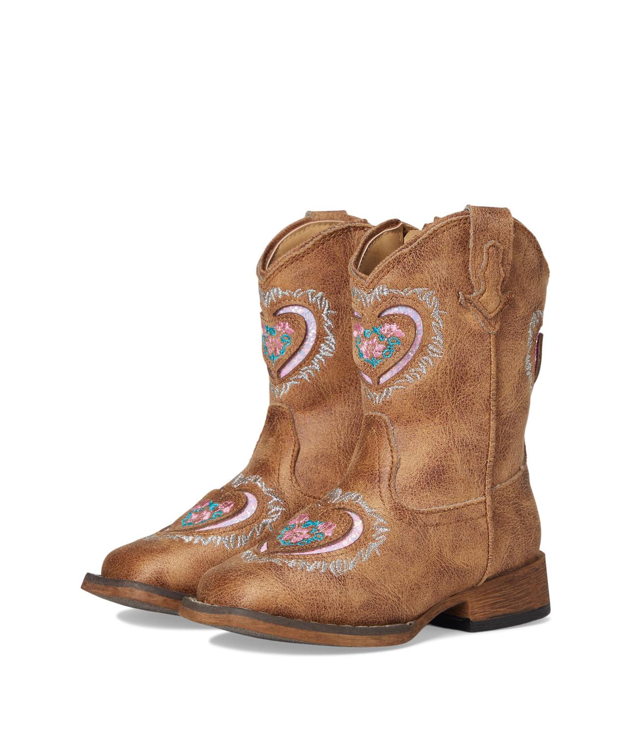 Оденьте своего ребенка, чтобы он привлекал всеобщее внимание, куда бы он ни пошел в ботинках Roper Lydia. Эти ботинки до середины голени сделаны из стельки EVA и полиэстеровой подкладки, которые сохраняют ноги вашего ребенка прохладными и удобными в течение всего дня. Верх из искусственной кожи имеет блестящую подкладку в виде сердца с вышивкой и застежку-молнию сбоку для легкого надевания и снимания.
