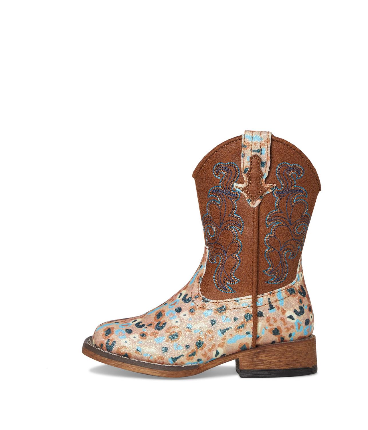 Блеск и шик: ботинки Roper Glitter Blossom: классический ковбойский шарм с ослепительной изюминкой. Эти ботинки с цветочным блестящим мыском привносят мерцающее выражение в каждый шаг. Синтетический верх обеспечивает прочность, а подкладка из полиэстера обеспечивает мягкую и удобную посадку. Благодаря внутренней молнии их легко надевать и снимать, что идеально подходит для маленьких ковбоев в дороге! Широкий квадратный носок и силуэт до икры обеспечивают просторную, но стильную посадку, а отделка в стиле вестерн добавляет аутентичный штрих. Разработанные для приключений на весь день, стелька из ЭВА обеспечивает мягкий комфорт, а подошва из ТПУ обеспечивает надежное сцепление.