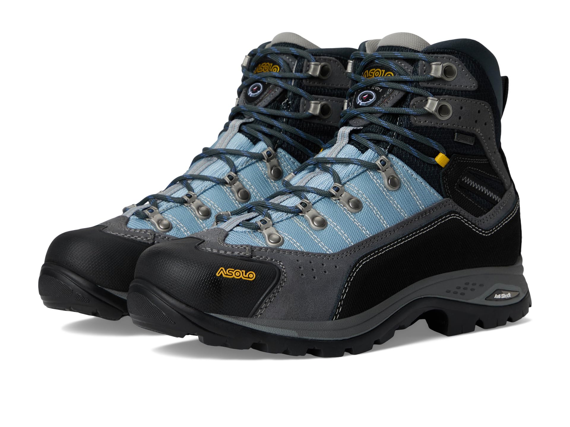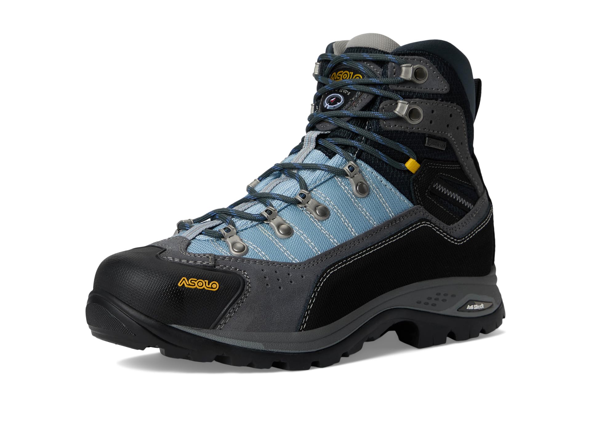 обеспечивает водонепроницаемую защиту, чтобы ноги оставались сухими и комфортно прохладными. Они оснащены шнуровкой и подошвой Asolo/Vibram Duo Radiant с Megagrip (резина двойной плотности Eva). Язычок на щиколотке позволяет легко надевать и снимать.