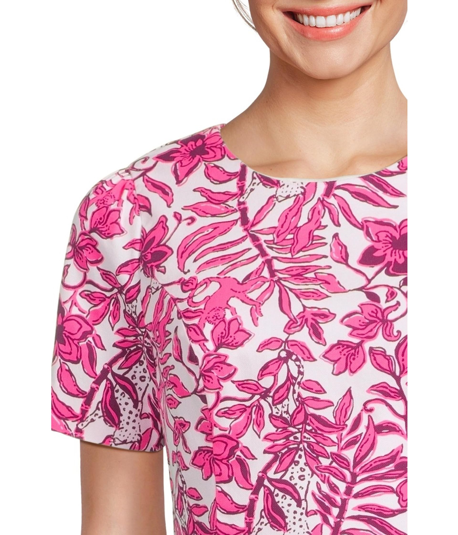 Повседневное, но шикарное, платье-стретч Lilly Pulitzer Mila Short Sleeve Stretch Dress — это обязательная вещь в гардеробе. Приталенное платье-трапеция с круглым вырезом, надеваемое на застежку, с короткими рукавами, цветочным принтом по всей поверхности и силуэтом выше колена.