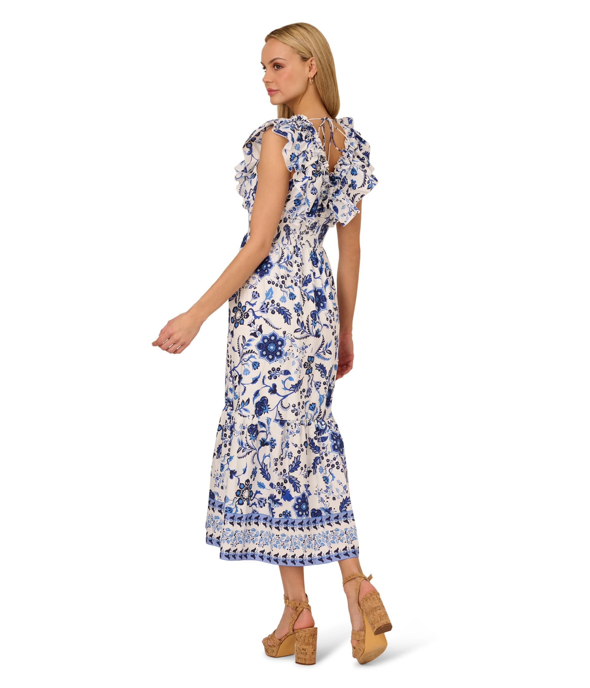 Платье Adrianna Papell Printed Ruffle Midi Dress, цвет White/Blue Multi 16 222₽