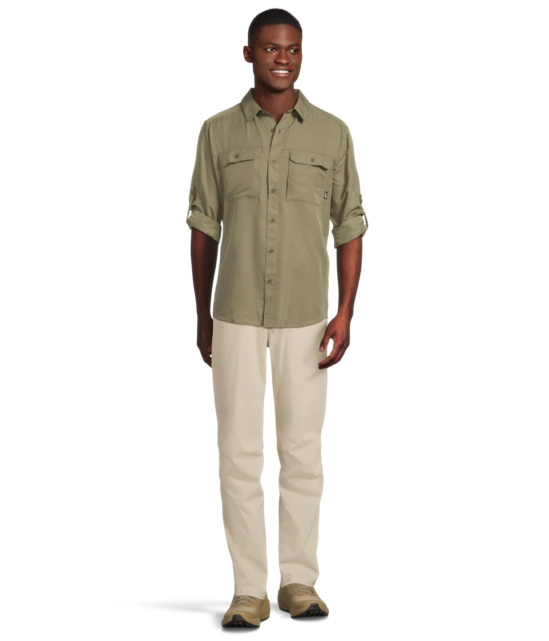 Оставайтесь в уюте и непринужденности с удобной, влагоотводящей рубашкой Mountain Hardwear Canyon с длинным рукавом и защитой UPF 50, которая фильтрует жесткие ультрафиолетовые лучи. Имеет отложной воротник с центральной застежкой на пуговицы спереди, надежные нагрудные карманы на молнии, которые также служат вентиляционными отверстиями, регулируемые закатанные рукава с застежкой на пуговицы, дизайн с кокеткой сзади и подгиб рубашки.