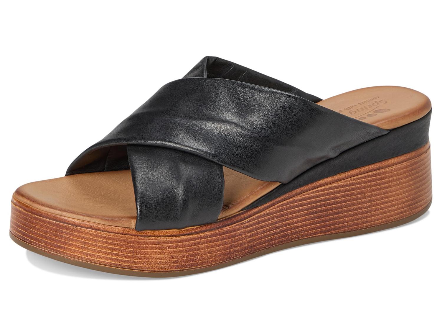 Выглядите дерзко и смело в стильных босоножках Spring Step Kaiyah. Изготовленные из кожи, верха, подкладки и стельки, эти сандалии имеют открытый круглый носок, детали перекрещивающихся ремешков, модель slip-on, танкетку и фирменную отделку на стельке.