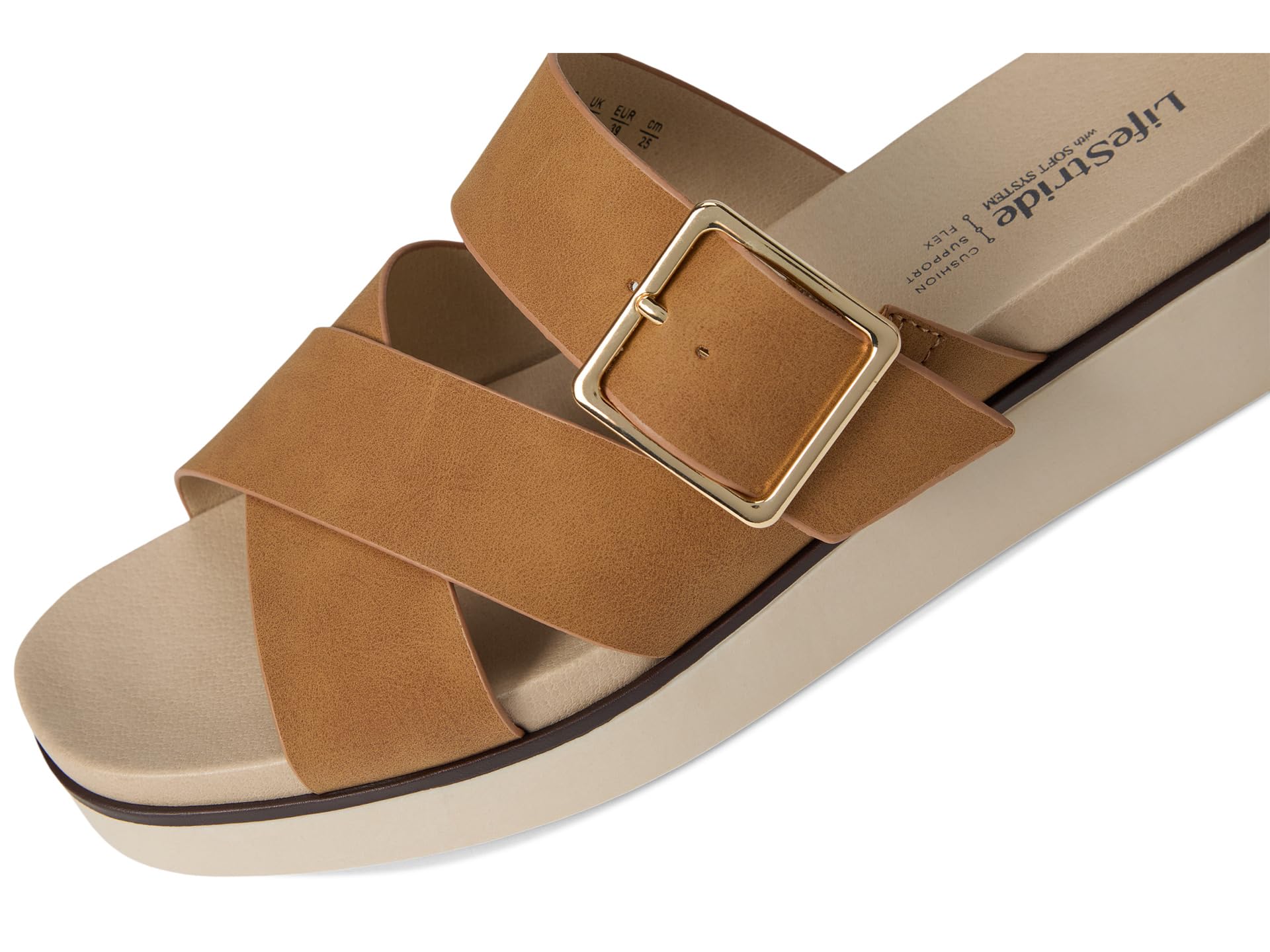 Идеально подходящие для путешествий или на каждый день, LifeStride Getaway, универсальные женские сандалии с ремешками, имеют модный, но классический вид. Женские сандалии на платформе с ремешками из искусственной кожи, мягким квадратным открытым носком, декоративной пряжкой и легкой конструкцией. Подкладка изготовлена из частично переработанных материалов. Проверенная технология комфорта Soft System для непревзойденной амортизации, поддержки и гибкости в каждой паре. Подошва с цепким креплением для дополнительной устойчивости.