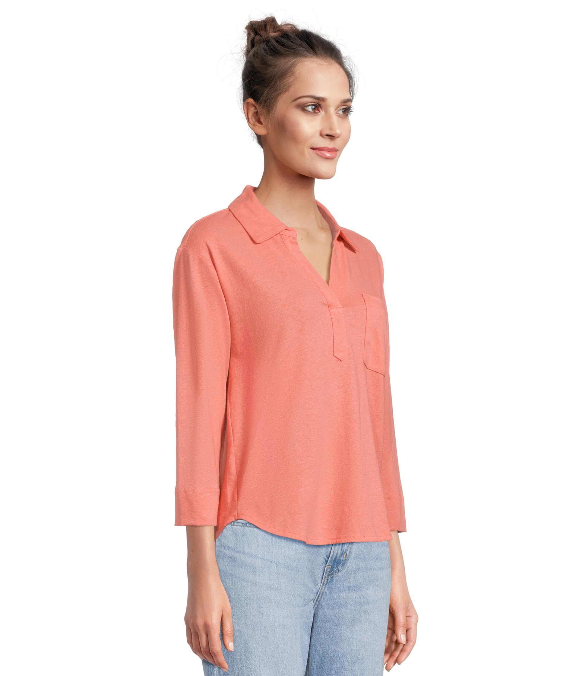 Футболка L.L.Bean Cotton Linen Tee Splitneck, цвет Dark Salmon