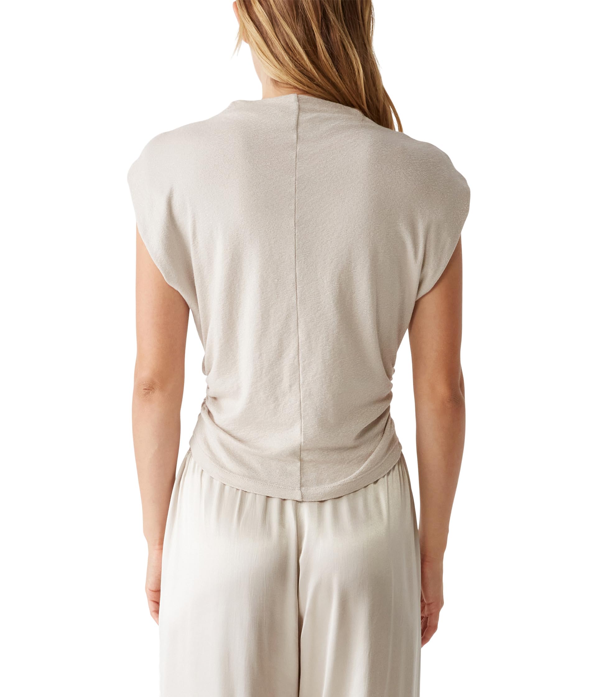 Поднимите свой базовый образ на топ Michael Stars Reese Mock Neck Power Shoulder. Этот классический топ без рукавов и с прямым подолом для повседневного образа. Сочетайте его с базовыми джинсами, и вы готовы к выходу.