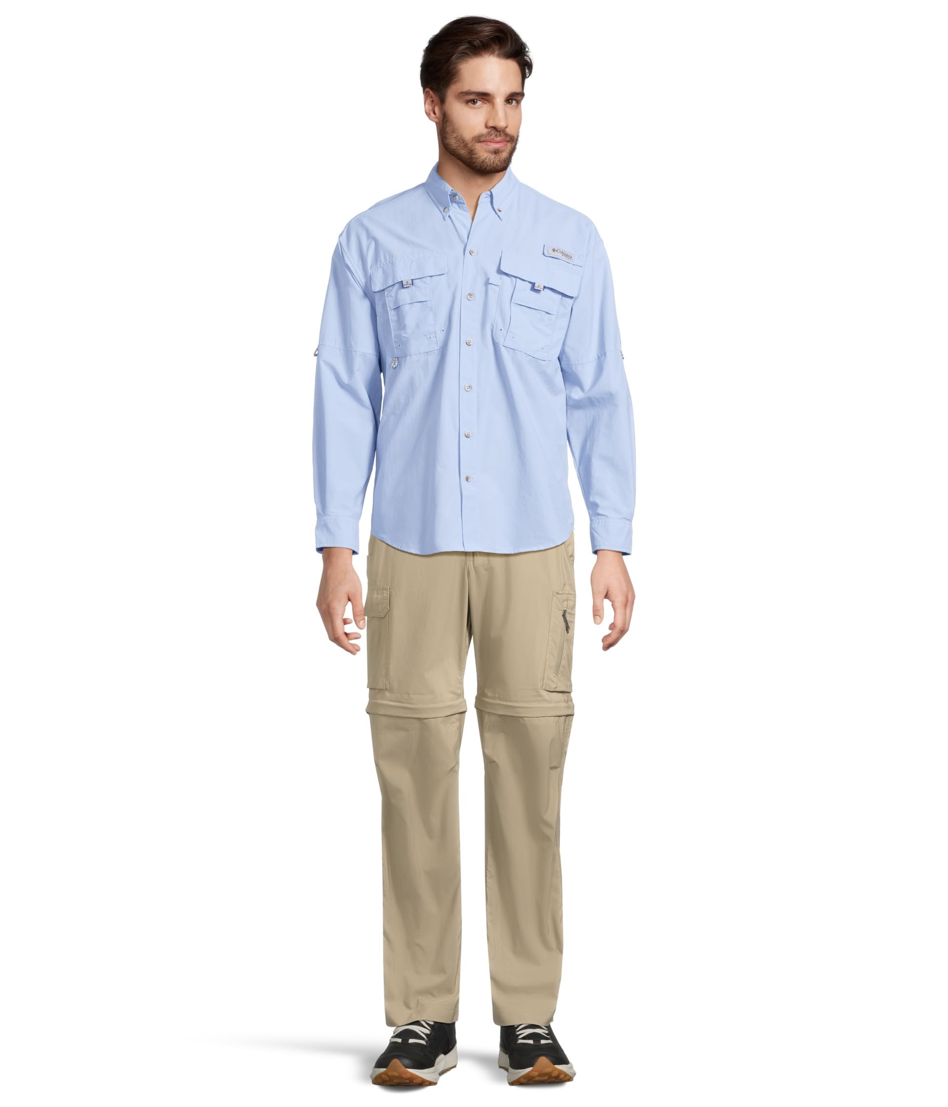 Быстросохнущая, вентилируемая, солнцезащитная рубашка-трансформер с держателями для всего.