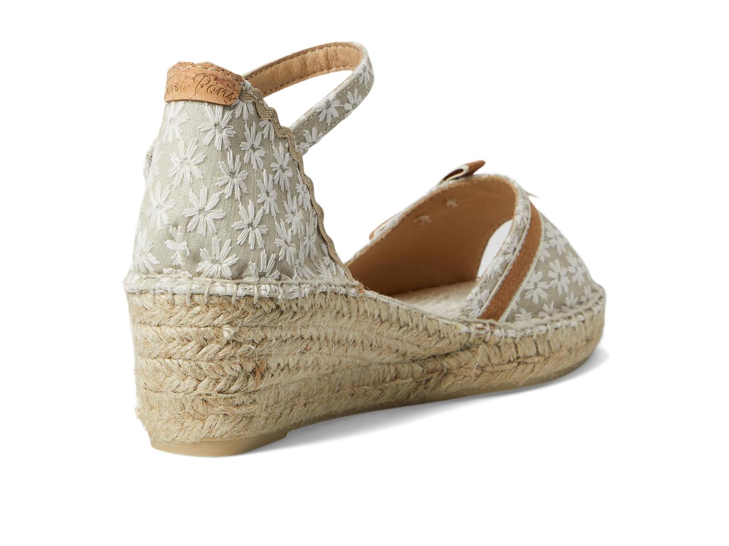 Сандалии Toni Pons Diana — это милые эспадрильи с открытым носком, украшенные нежным бантом и тонким цветочным принтом. Эти босоножки на каблуке изготовлены из резинового верха, джутовой подошвы, хлопковой стельки и хлопковой подкладки. Ремешок на щиколотке с регулируемой пряжкой обеспечивает надежную посадку. Удобные и стильные, эти эспадрильи идеально подойдут к вашим повседневным нарядам и платьям.