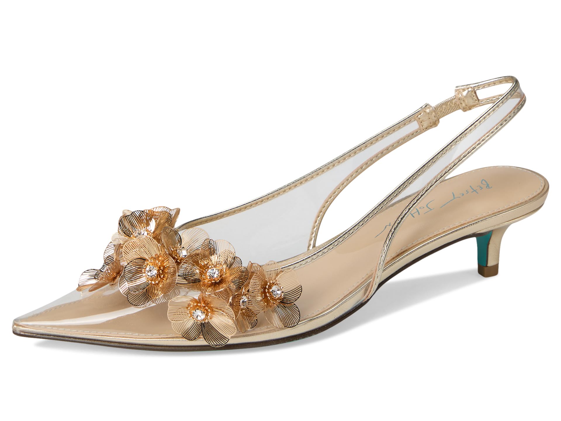 Туфли-лодочки Blue by Betsey Johnson Robin — элегантный предмет гардероба с цветочными украшениями. Эти босоножки на каблуке выполнены из искусственной кожи, резиновой стельки и подкладки из искусственной кожи. Ремешок с открытой пяткой обеспечивает дополнительный комфорт. Сочетайте свои праздничные наряды и шикарные платья с этими туфлями-лодочками на каблуке.