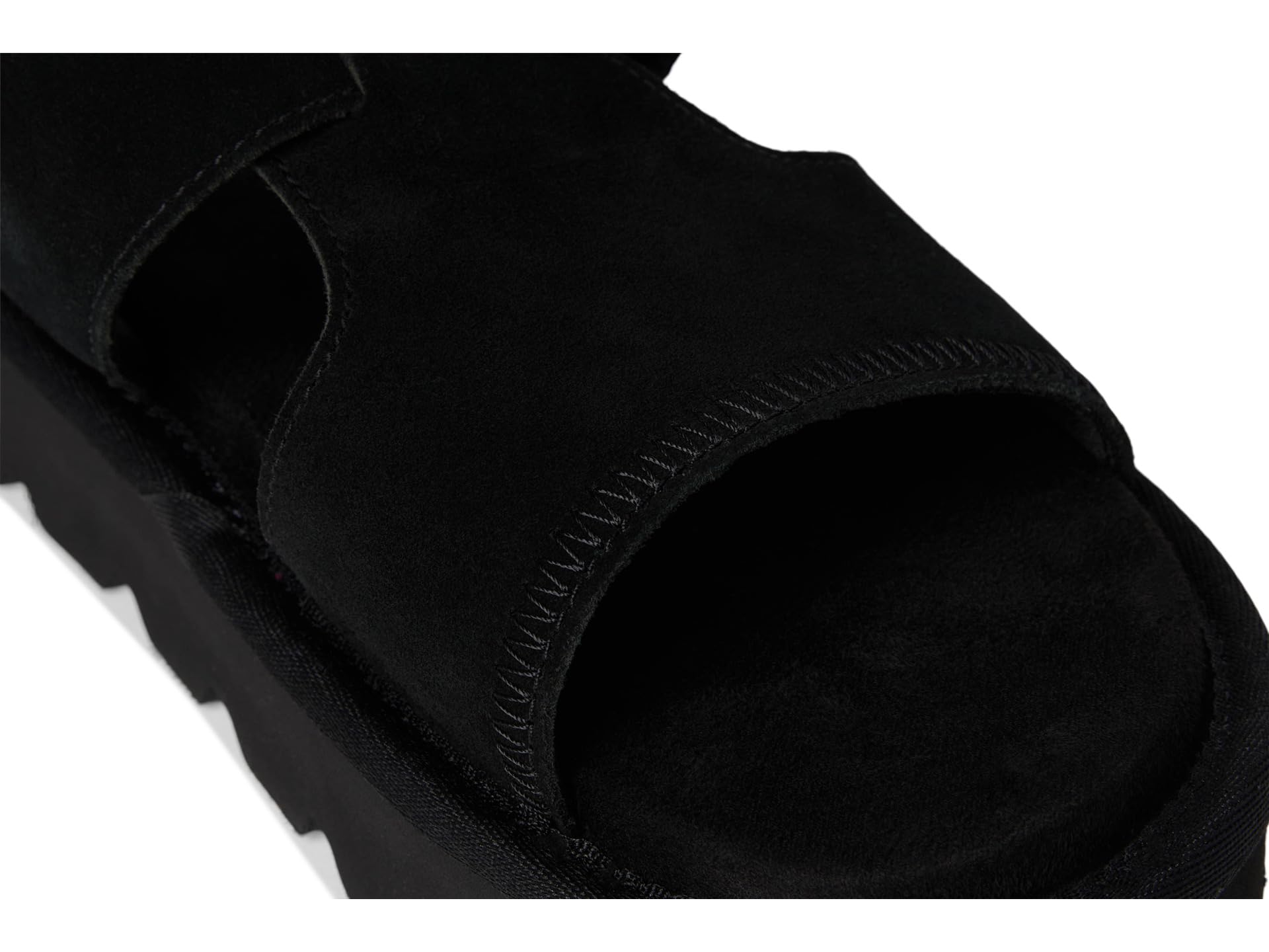 Ощутите длительный комфорт и стильно окажитесь в центре внимания в шлепанцах Koolaburra от UGG Tizz Slide. Открытый круглый носок и конструкция с застежкой-слайдом делают их идеальным вариантом для ношения и похода, который так же удобен, как и крут. Они изготовлены из замшевого верха с отделкой строчкой и комфортной пенной стелькой с покрытием из микрофибры. Застежка на липучке обеспечивает легкое надевание и снятие, а массивный каблук-платформа придает образу изысканности.