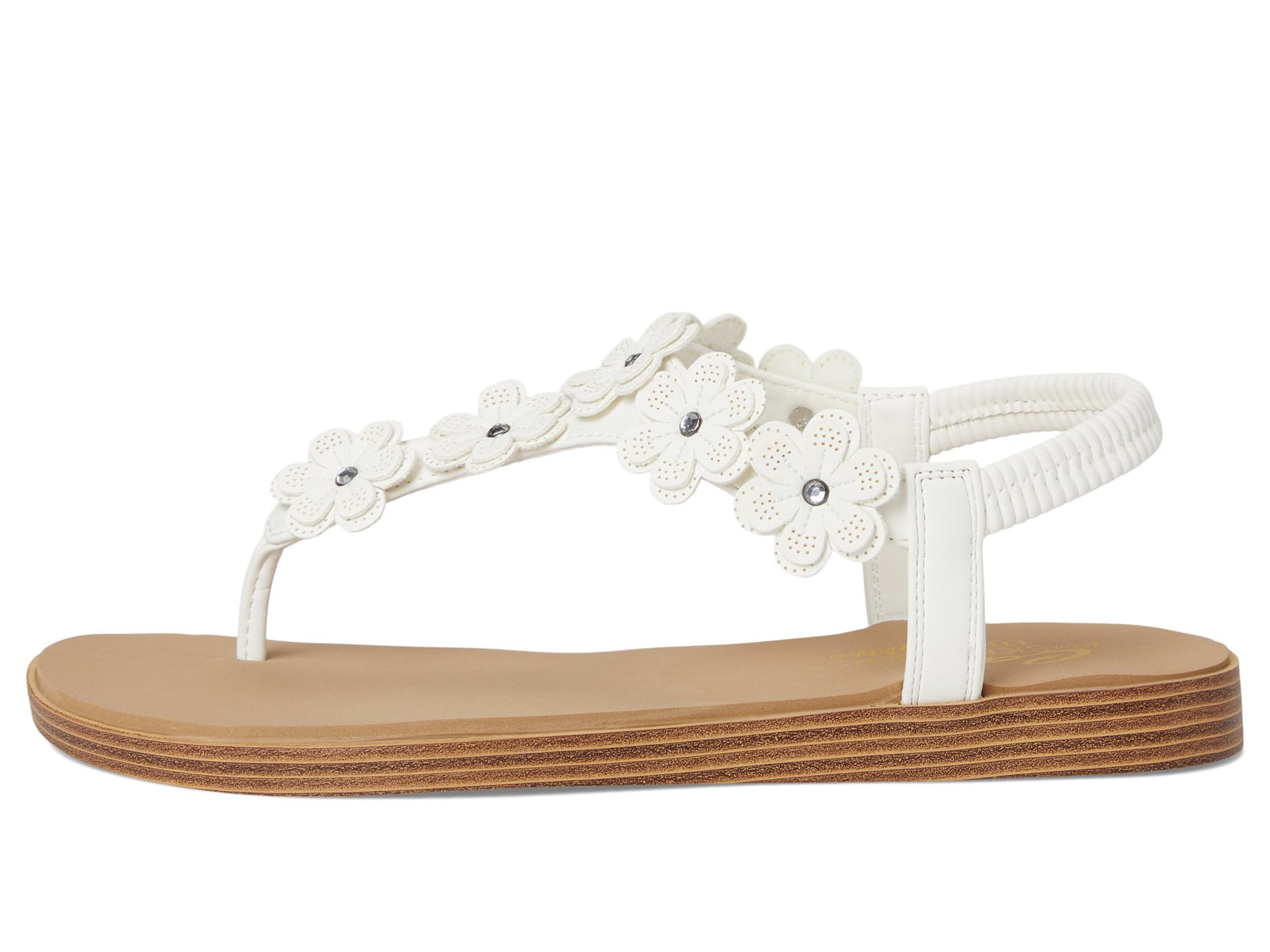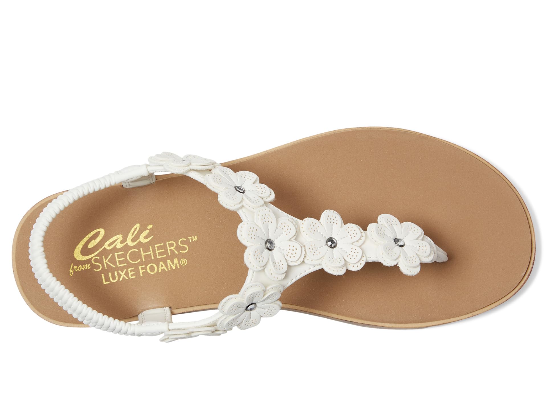 Найдите свой центр в красивом стиле и комфорте в сандалиях SKECHERS Summer Cove - Beach Bloom. Резиновый верх этих удобных повседневных сандалий с открытой пяткой украшен цветочными стразами и акцентами в виде страз. Они изготовлены из синтетической резиновой подкладки и мягкой пенной стельки Luxe Foam. Эти плоские сандалии изготовлены из 100% веганских материалов.
