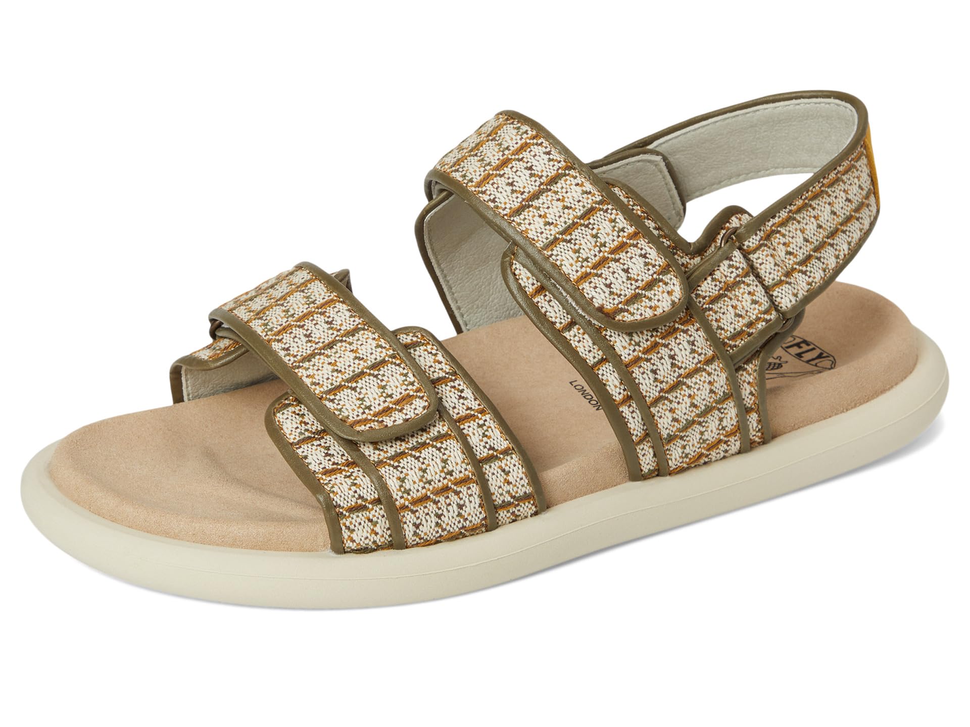 Тканевый верх сандалий FLY LONDON PAAV228FLY имеет модный рисунок «гусиные лапки» и контрастную строчку. Кожаная подкладка, амортизирующая стелька от пятки до носка и гибкая резиновая подошва с закругленным носком удобно охватывают ваши ноги.