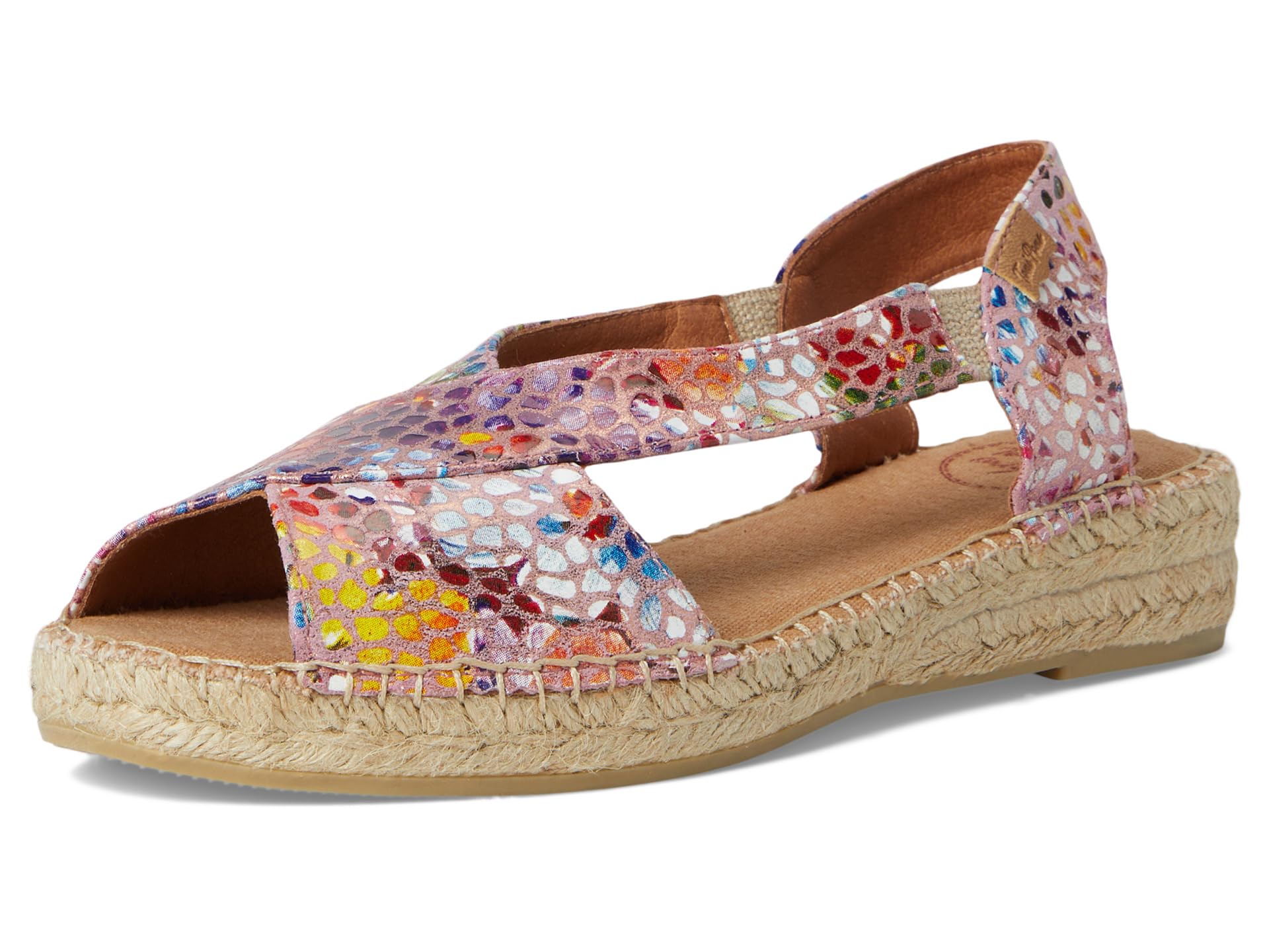 Эти разноцветные эспадрильи Toni Pons Elda-Pm для женщин сделаны из кожи. Изготовленные из резинового верха, кожаной подкладки и стельки, эти сандалии имеют открытый круглый носок, танкетку, ремешок сверху, ремешок сзади и модель slip-on. Кожа и подошва вручную сшиты вместе высококачественной хлопковой нитью.