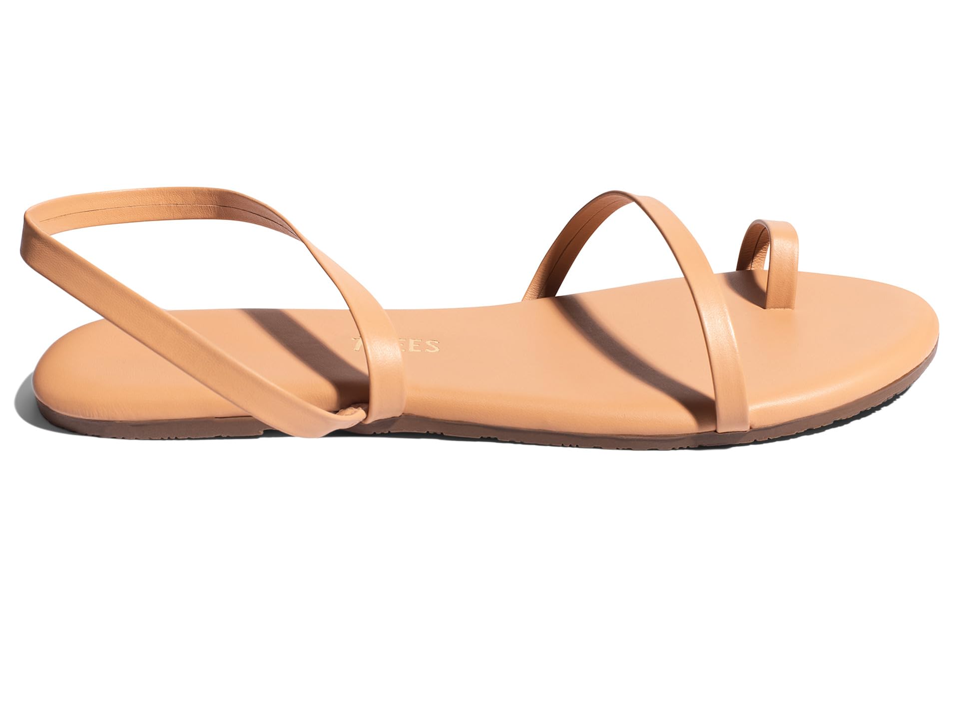 TKEES Mia Napa создана для стильных вас. Изготовленная из кожаного верха, подкладки и стельки, эта пара сандалий имеет круглый носок, три изящных ремешка, которые плавают вокруг стопы, создавая едва заметный вид, отсутствие каблука, застежка на ремешке сзади и стиль без застежек.