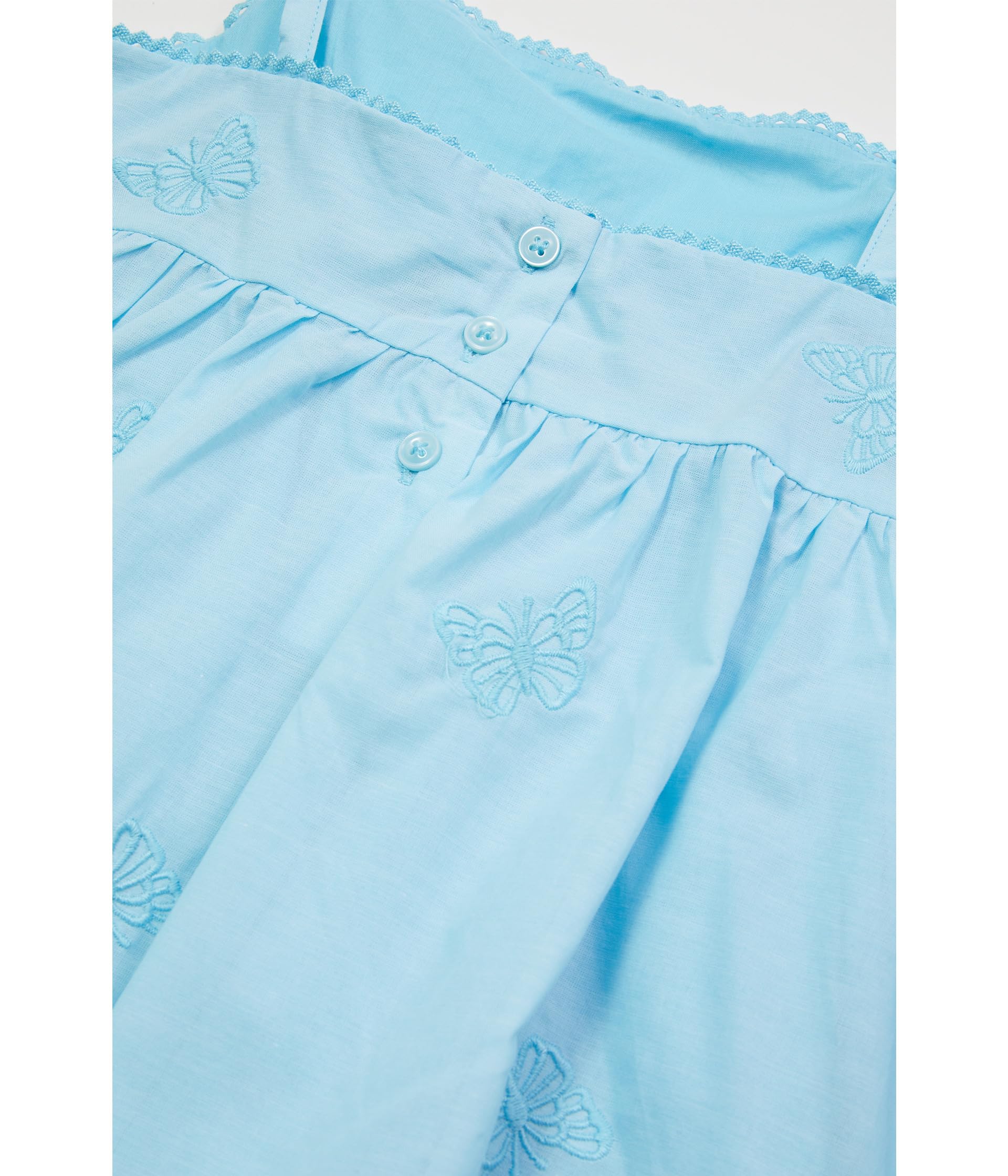 Порхайте в элегантности с причудливым очарованием! Это платье с вышивкой бабочками Janie and Jack — мечтательное наслаждение, идеально подходящее для маленьких модниц, которые любят кружиться. Это очаровательное платье с изящным вырезом-халтер и силуэтом без рукавов украшено изящной вышивкой в виде бабочек, которая добавляет немного волшебства к каждому шагу. Модель без застежек обеспечивает легкость ношения, а надежная застежка на пуговицы сзади обеспечивает идеальную посадку. Классическая длина до колена идеально подходит для солнечных приключений, чаепитий и особых случаев.