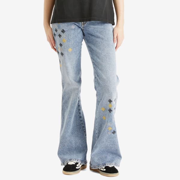 Расклешенные брюки с разрезами и вышивкой Quad Amiri, индиго