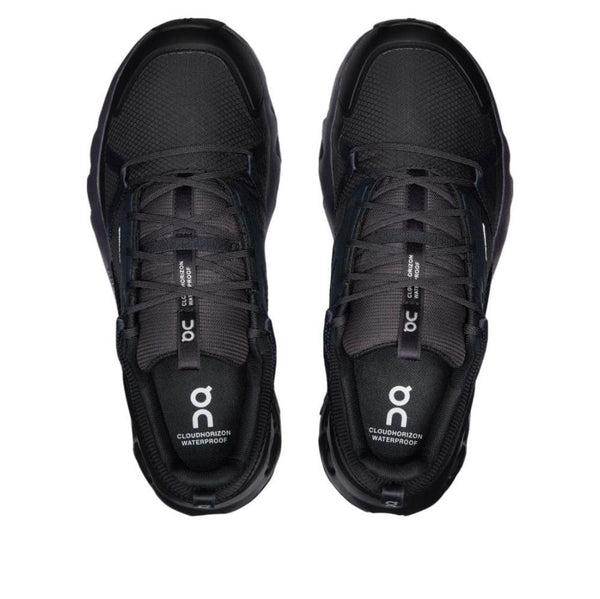On Cloudhorizon Waterproof Black: Стильные водонепроницаемые кроссовки с фирменной амортизацией CloudTec от On для комфорта и производительности. Легкие, но прочные, идеально подходят для любой погоды и активности. Элегантный черный дизайн плавно переходит от трассы к улице.