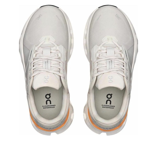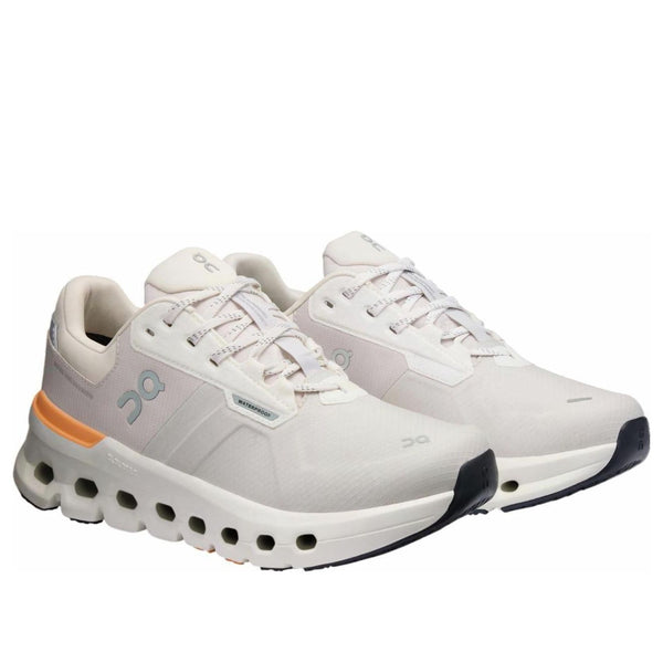 Бренд: On Running Цвет: белый Оставайтесь сухими и в комфорте с On Cloudrunner 2 Waterproof. Инновационная водонепроницаемая мембрана и дышащая конструкция в сочетании с амортизацией CloudTec обеспечивают превосходную производительность в любую погоду. Стильная цветовая гамма Wolf/Tangerine дополнит любой наряд, а эргономичный дизайн обеспечивает надежную поддержку для ношения в течение всего дня.