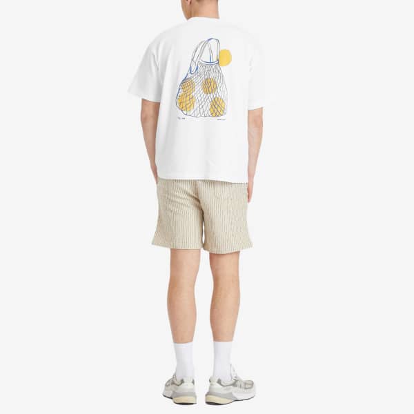 Percival переносит нас из мрачного британского неба в теплую Италию с футболкой Arancia Tee — Arancia переводится как оранжевый. Украшенная графикой коллекции пикантных фруктов, заполняющих старомодную сетчатую сумку, эта легкая футболка подойдет для повседневного летнего образа. Dolce vita.