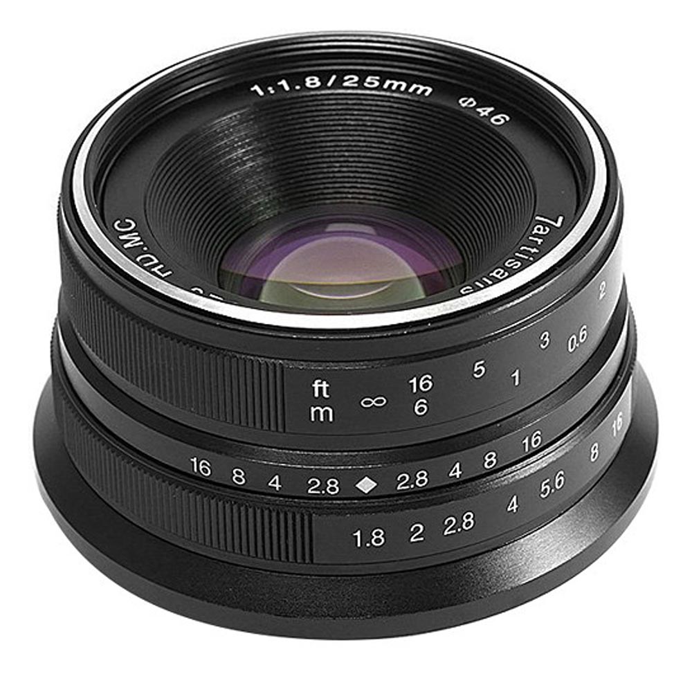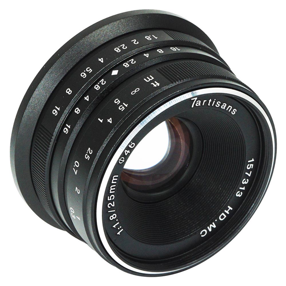 Компактный и универсальный черный объектив 25mm f/1.8 от 7artisans - это полностью ручной объектив, хорошо подходящий для портретной, репортажной и повседневной съемки, требующей естественного поля зрения. Светосильная максимальная диафрагма f/1.8 позволяет работать в различных условиях освещения и обеспечивает больший контроль над глубиной резкости для выделения объектов с помощью выборочной фокусировки. На отдельные стеклянные элементы нанесены многослойные покрытия для подавления бликов и призраков, что повышает контрастность и точность цветопередачи при работе в условиях сильного освещения. Кроме того, закругленная 12-лепестковая диафрагма обеспечивает приятное качество боке.