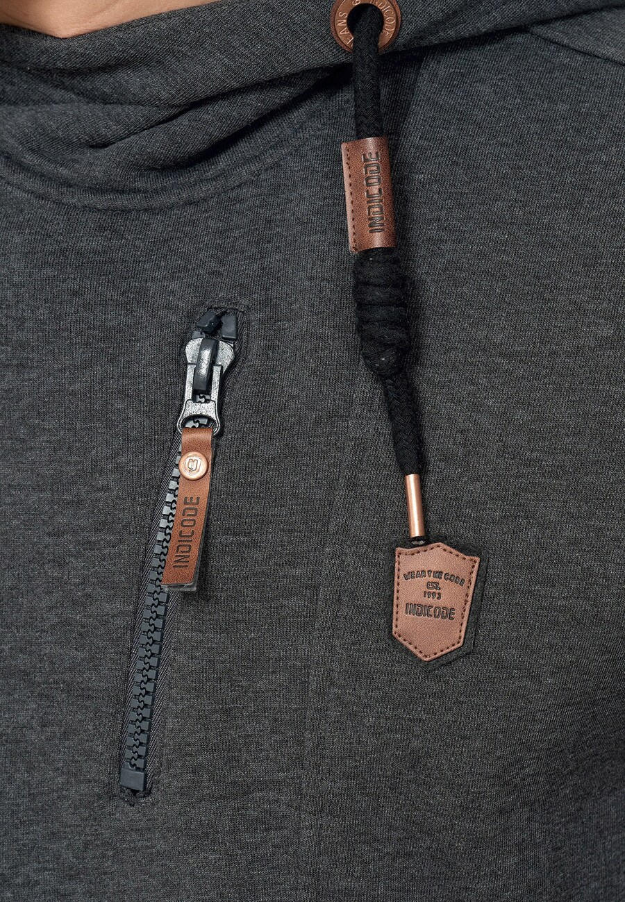 Толстовка с капюшоном на молнии INDICODE JEANS Elm, темно-серый