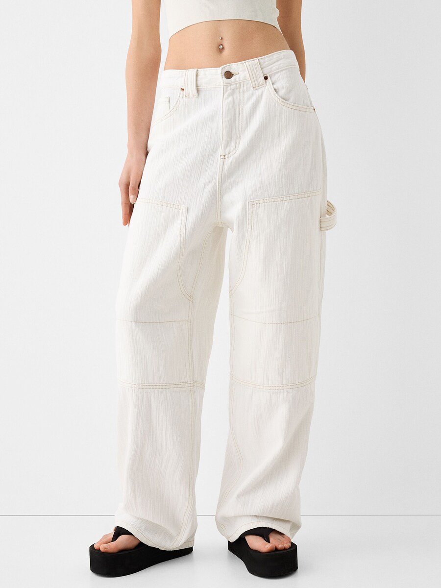 Джинсы свободного кроя Bershka, экрю 4 725₽