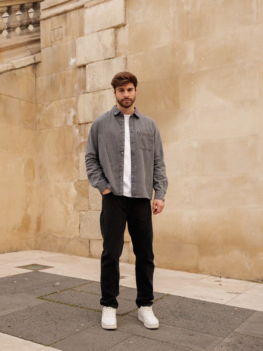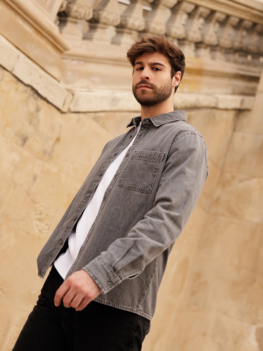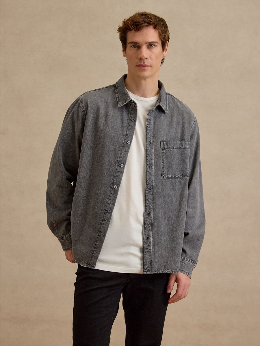 Рубашка обычного кроя на пуговицах DAN FOX APPAREL Mika, серый деним