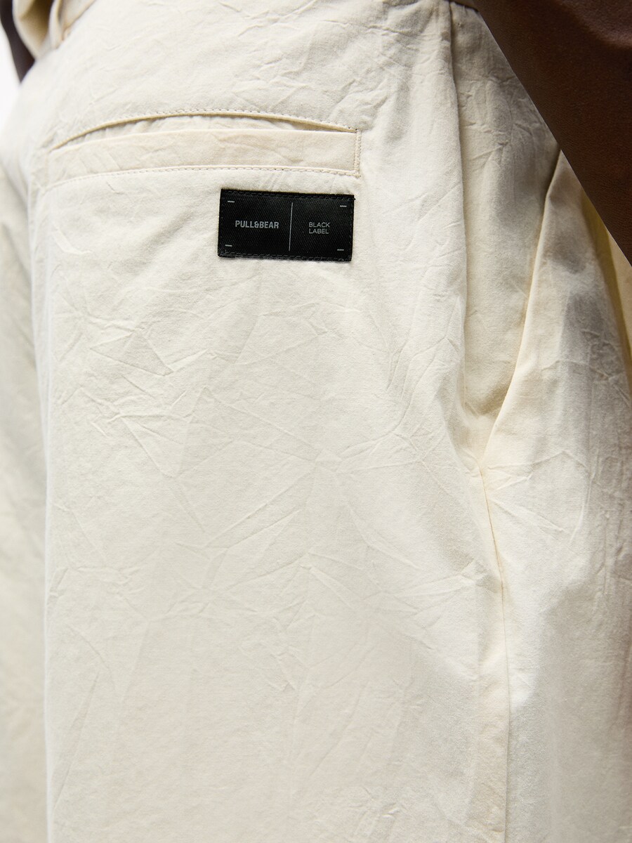 Брюки свободного кроя со складкой спереди Pull&Bear, экрю