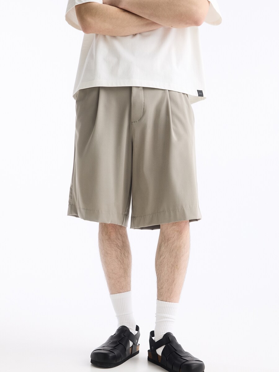 Брюки свободного кроя со складкой спереди Pull&Bear, серо-коричневый