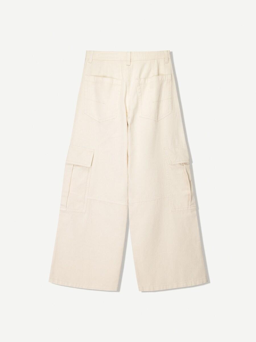 Широкие брюки-карго Bershka, экрю